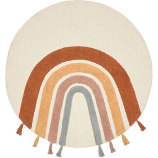 Vloerkleed rond 150 cm – wit met grijs – hoogpolig
