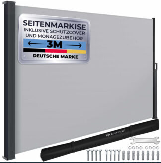 Klemzonwering / zonnescherm met handzwengel – breedte 360 cm – voor balkon en overkapping – zonder boren – hoogte verstelbaar – antraciet