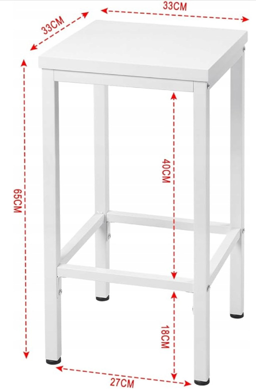Set van 2 EUGAD barkrukken, metalen poten, kleur wit. Diepte van het meubel 33 cm.