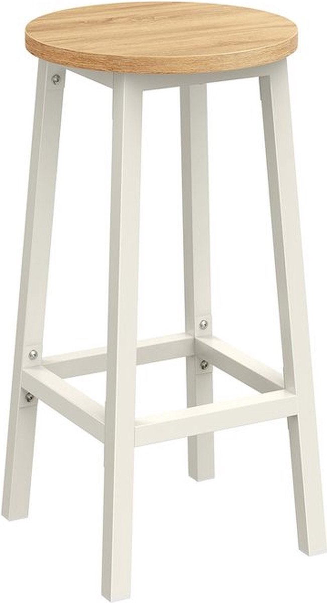 [Tijdloos mooi] Eikenbeige oppervlak met houtnerf, wit frame en naar buiten gerichte poten geven deze barkruk een tijdloze charme en passen bij talloze stijlen voor je keukeneiland of bartafel.
