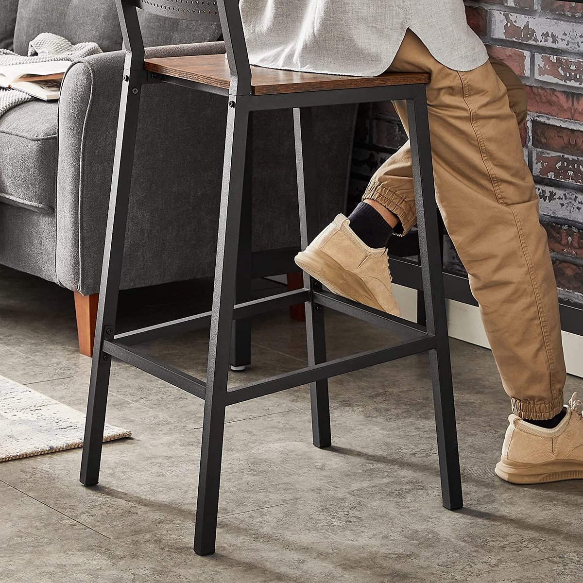 - Het is tijd voor industriële stijl! Rustiek bruine spaanplaat, zwart metaal en geperforeerde rugleuning zijn gecombineerd – twee barkrukken voor uw keuken, bar of eetkamer. De krukken in industriële stijl zullen uw gasten zeker bevallen