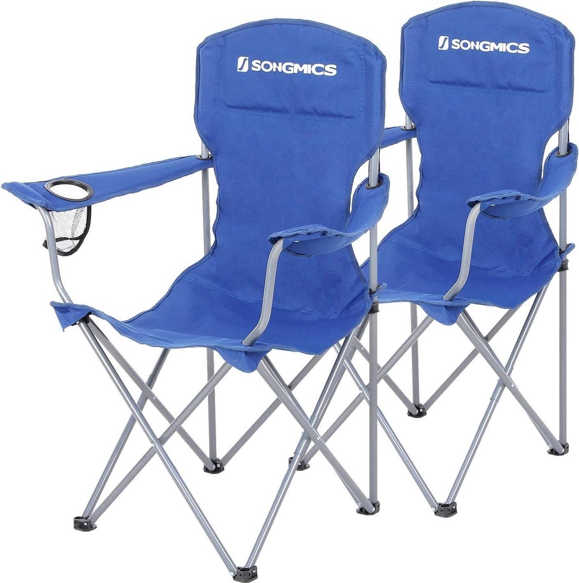 2x Campingstoel / visstoel – inklapbaar – robuust frame – met flessenhouder – blauw – set van 2 stuks – GCB08BU