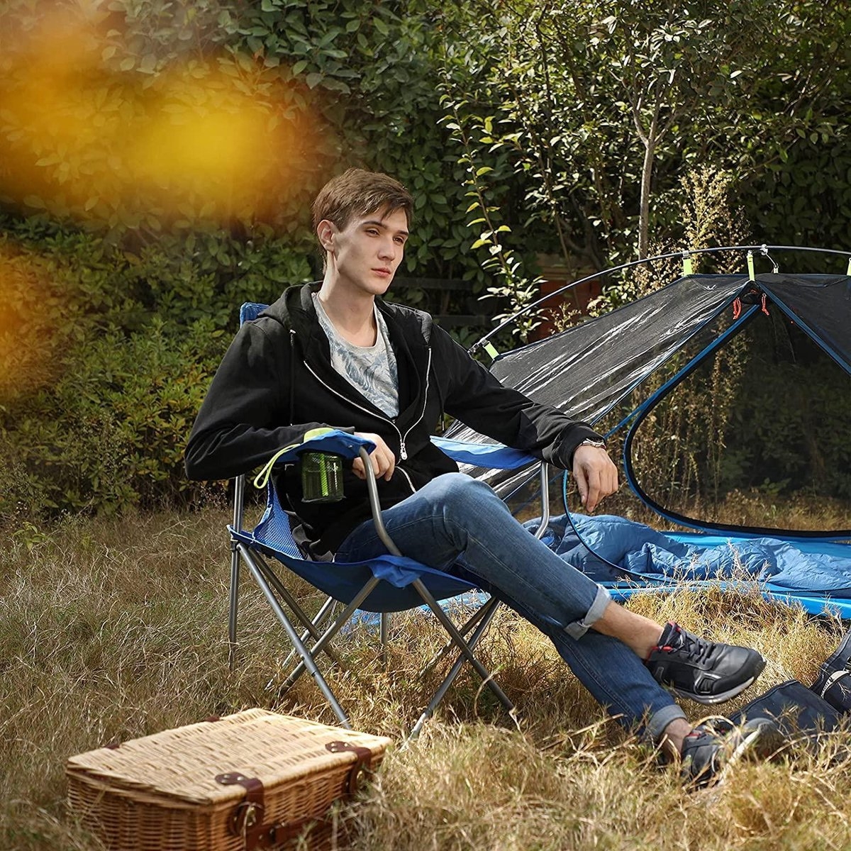 • Praktische accessoires: dankzij de flessenhouder zijn je dranken altijd binnen handbereik. Je kunt deze campingstoel bovendien opvouwen en in de meegeleverde draagtas opbergen; draag hem gewoon over de schouder en klaar is Kees