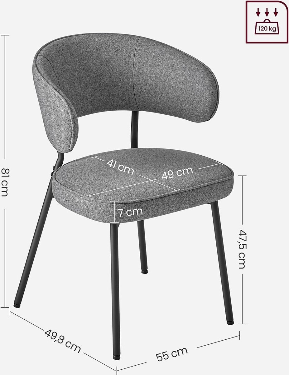 Afmetingen per stoel: 49,8 x 55 x 81 cm (D x B x H).