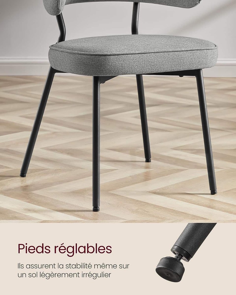 [Verstelbare voetjes] De verstelbare voetjes houden de keukenstoelen stabiel, zelfs op licht oneffen vloeren, en beschermen uw vloer tegen krassen.