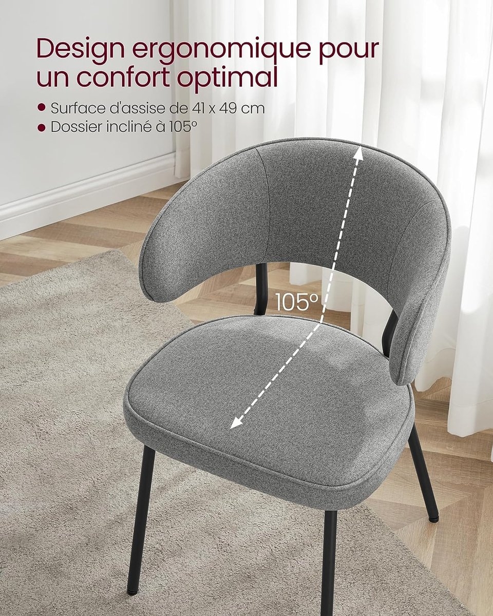 [Hoog zitcomfort] Het zitvlak van 41 x 49 cm verlicht de druk op uw heupen; het 7 cm dikke zitkussen is zacht; dankzij de hoek (105°) tussen rugleuning en zitting zorgt deze ergonomische keukenstoel voor een comfortabele houding.