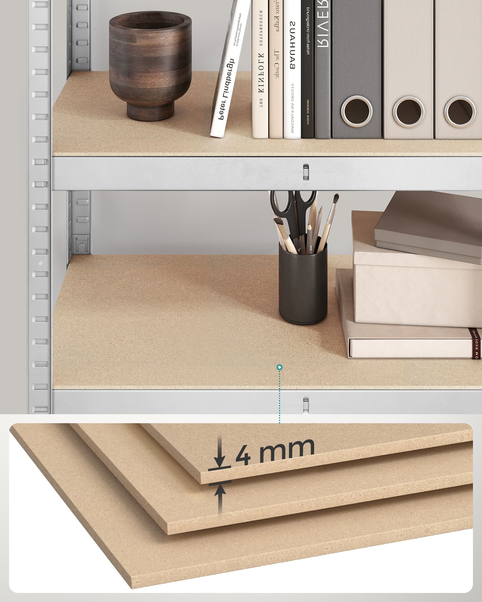 Hoog draagvermogen: Elke plank van deze stellingkast kan tot 130 kg dragen.