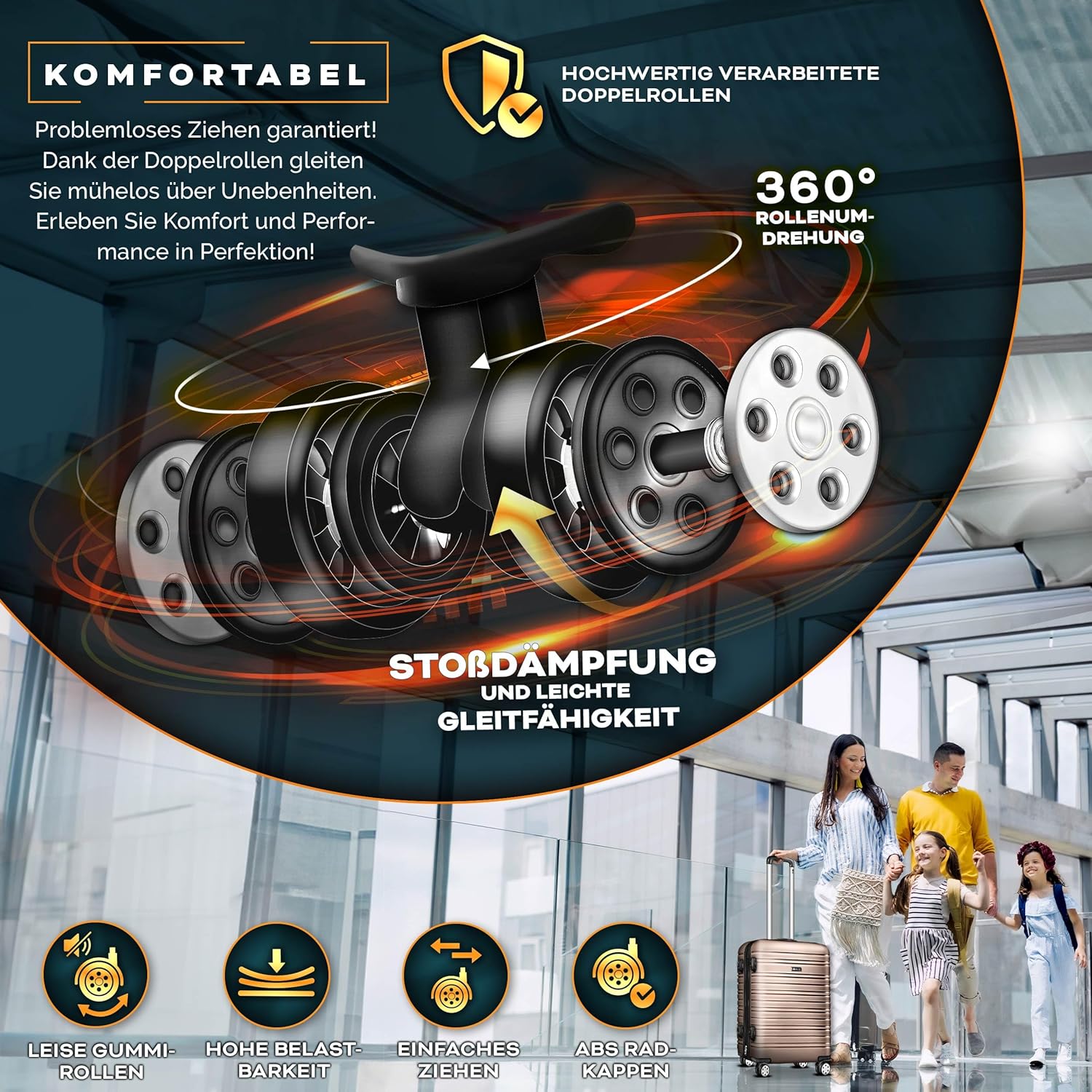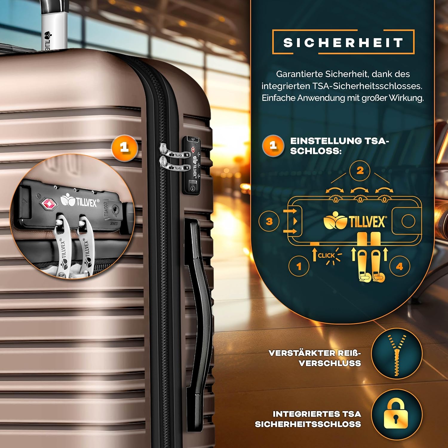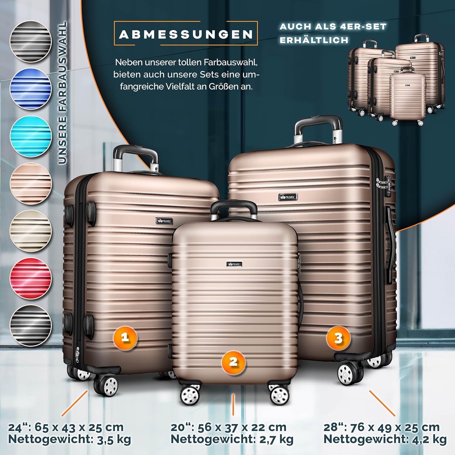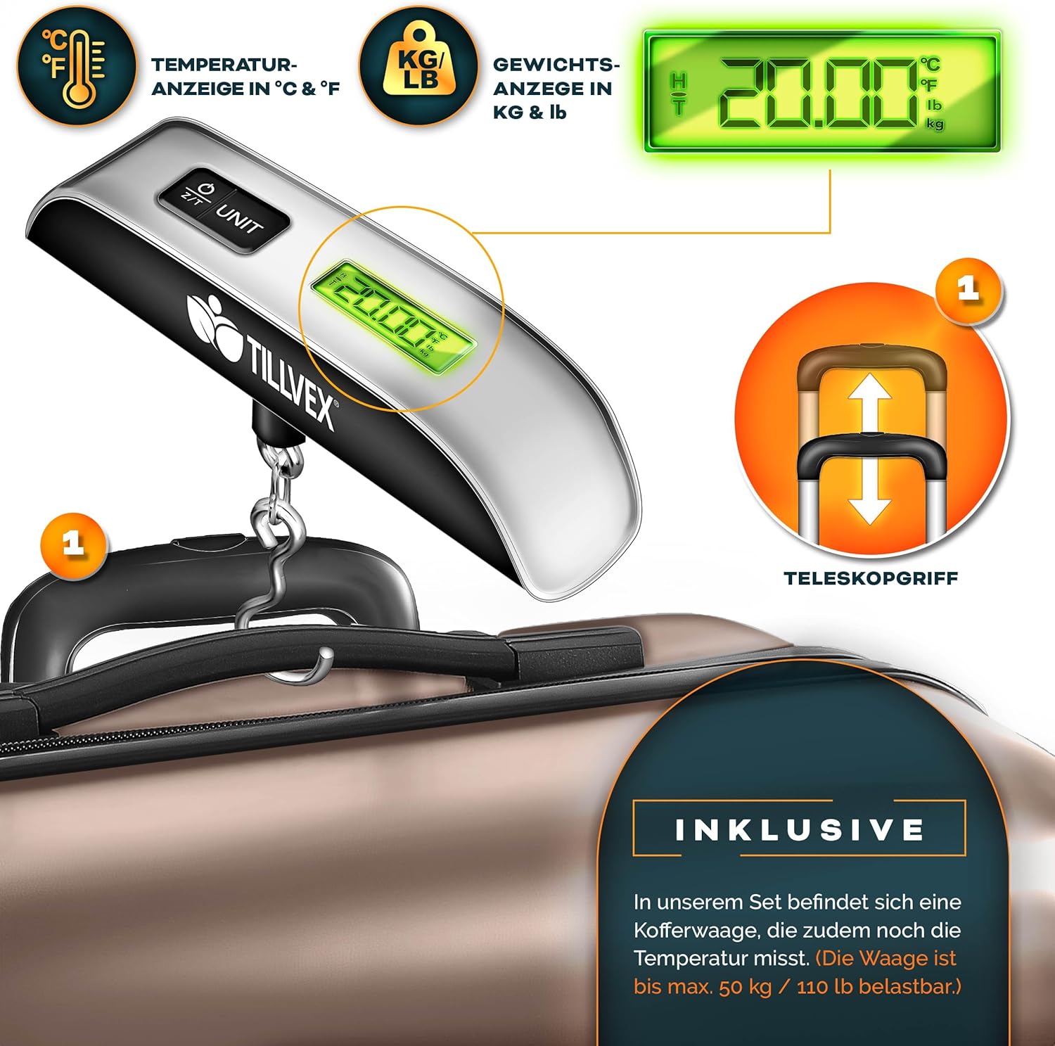 Naast de hoogwaardige koffers met harde schaal bevat onze set handige accessoires zoals bagagelabels (1 per koffer) en bagageriemen (2 per koffer) voor elke koffer, evenals een bagageweegschaal. Dit maakt identificatie gemakkelijker en helpt extra kosten te voorkomen.