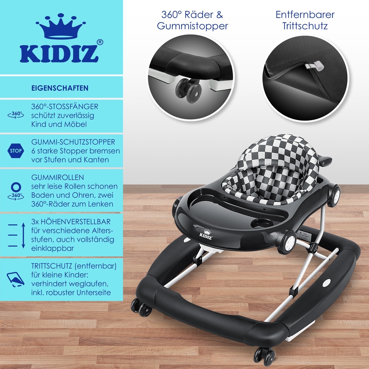 MULTIFUNCTIONEEL: Als kinderzitje, loophulp, speel- en leeromgeving, als eettafel of schommelstoel – met de KIDIZ Babywalker heb je alle opties in één apparaat. Kleurrijk en veelzijdig, de babywalker gaat mee en zal je baby inspireren. De eerste stapjes van je kroost moeten veilig en gecontroleerd zijn. Met de babywalker heb je de perfecte leermeester voor de eerste stapjes van je baby.