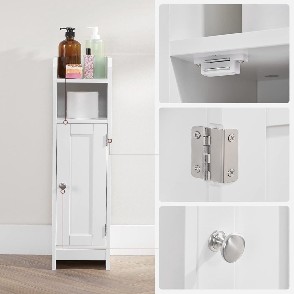 Wat je krijgt: Een praktische badkamerkast die esthetiek en functionaliteit combineert en een manier is om een vleugje frisheid aan je badkamer toe te voegen en je spullen netjes op te bergen.