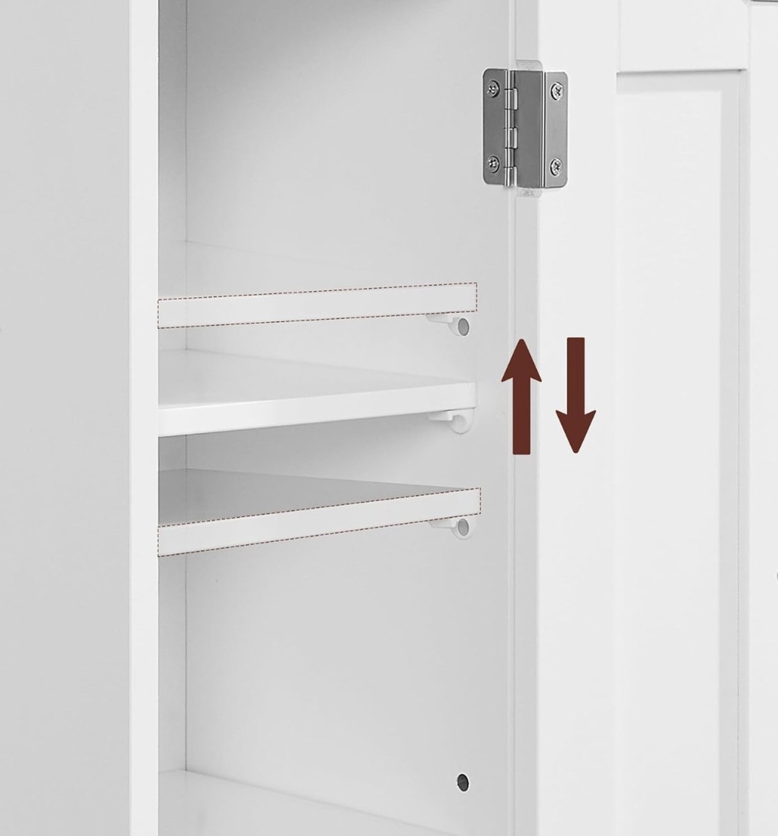 Praktische details? Zo belangrijk! De planken achter de deur zijn in hoogte verstelbaar, zodat je spullen, groot of klein, hier een plekje vinden. Sterker nog: het oppervlak is gemakkelijk schoon te maken, omdat het gemaakt is van MDF en een laklaag heeft.
