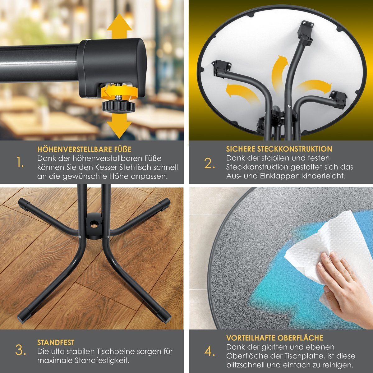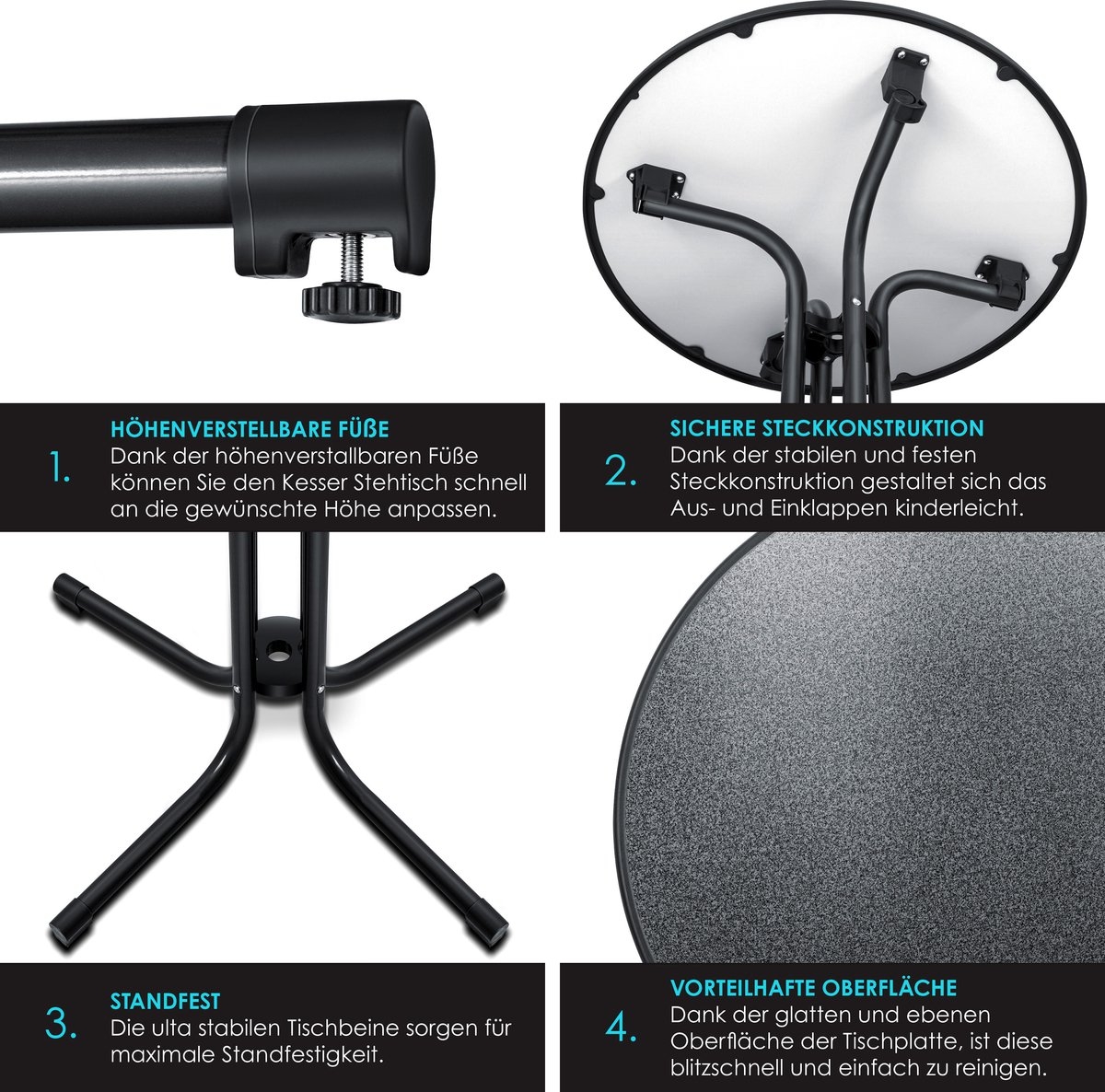 BELADBAAR, ROBUUST EN DUURZAAM: Profiteer van de hoogwaardige en stabiele hoge tafel van KESSER, die extreem robuust is en een draagvermogen heeft tot 60 kg.Bovendien is de partytafel ook uitstekend geschikt voor buitengebruik, omdat hij gemaakt is van UV- en weerbestendige onderdelen zoals gepoedercoat staal.Hierdoor is de tuintafel ook heel gemakkelijk en snel schoon te maken.