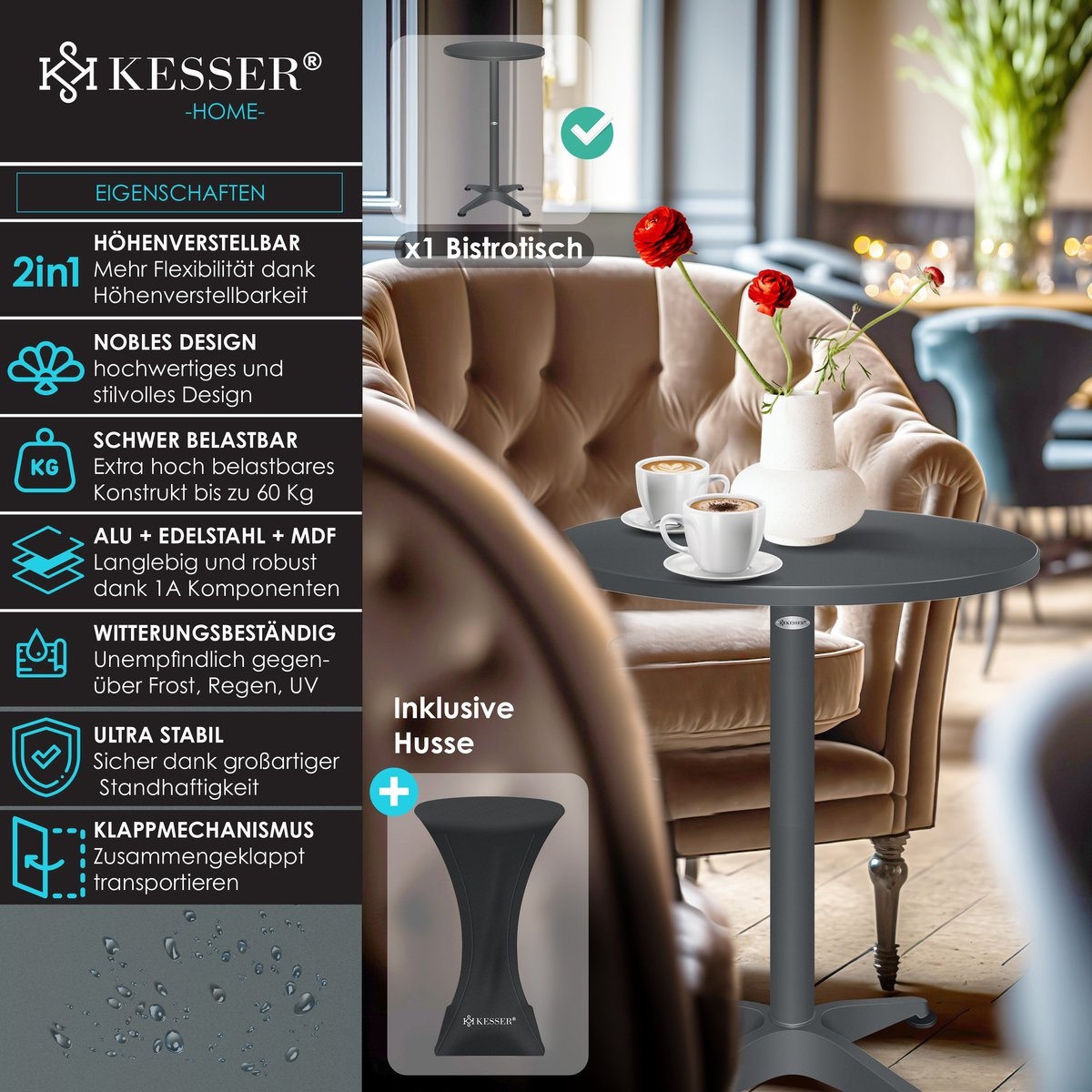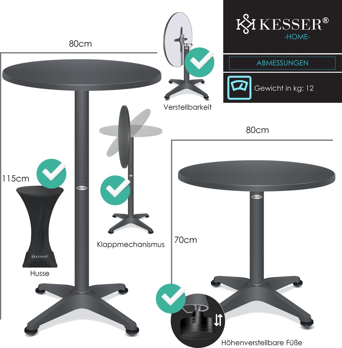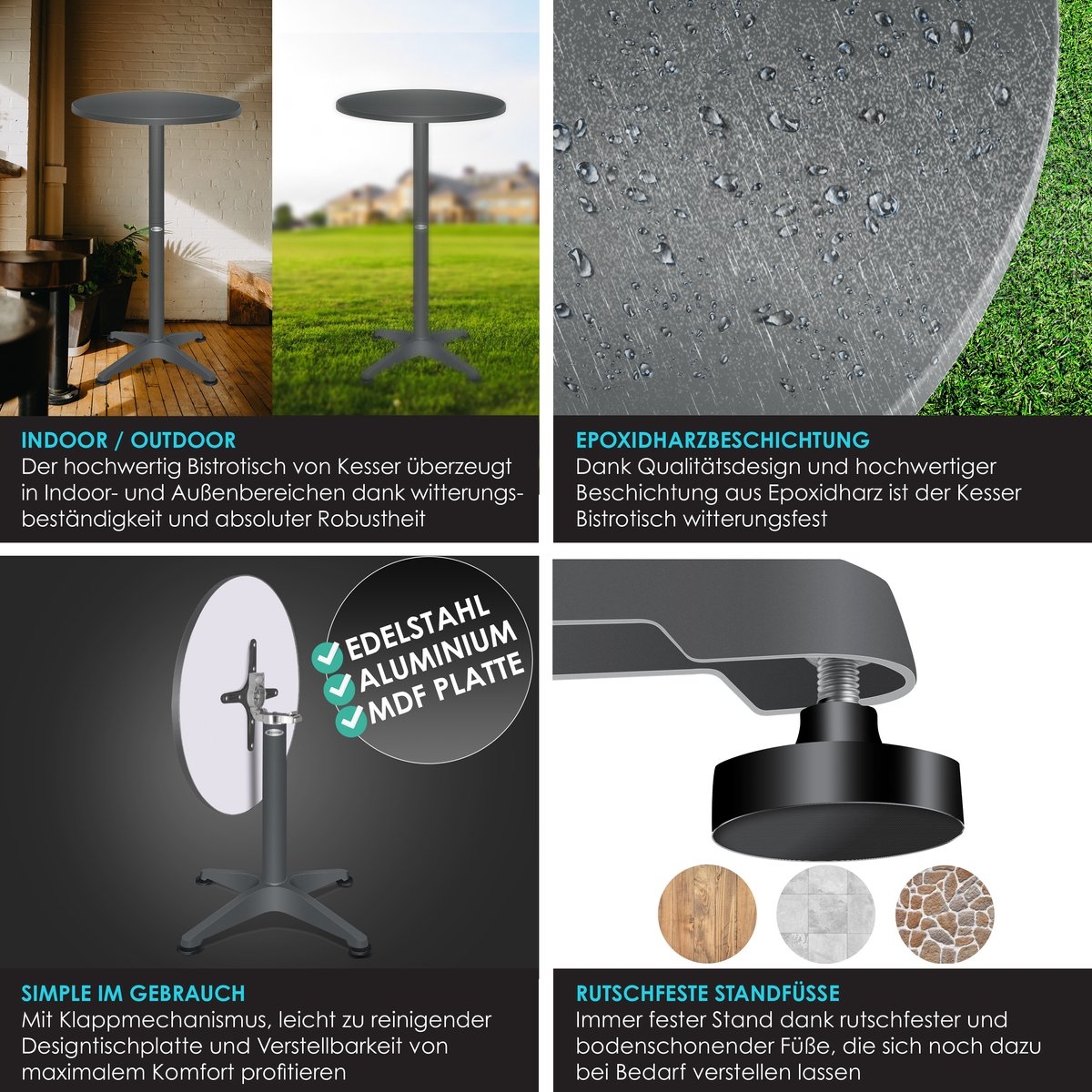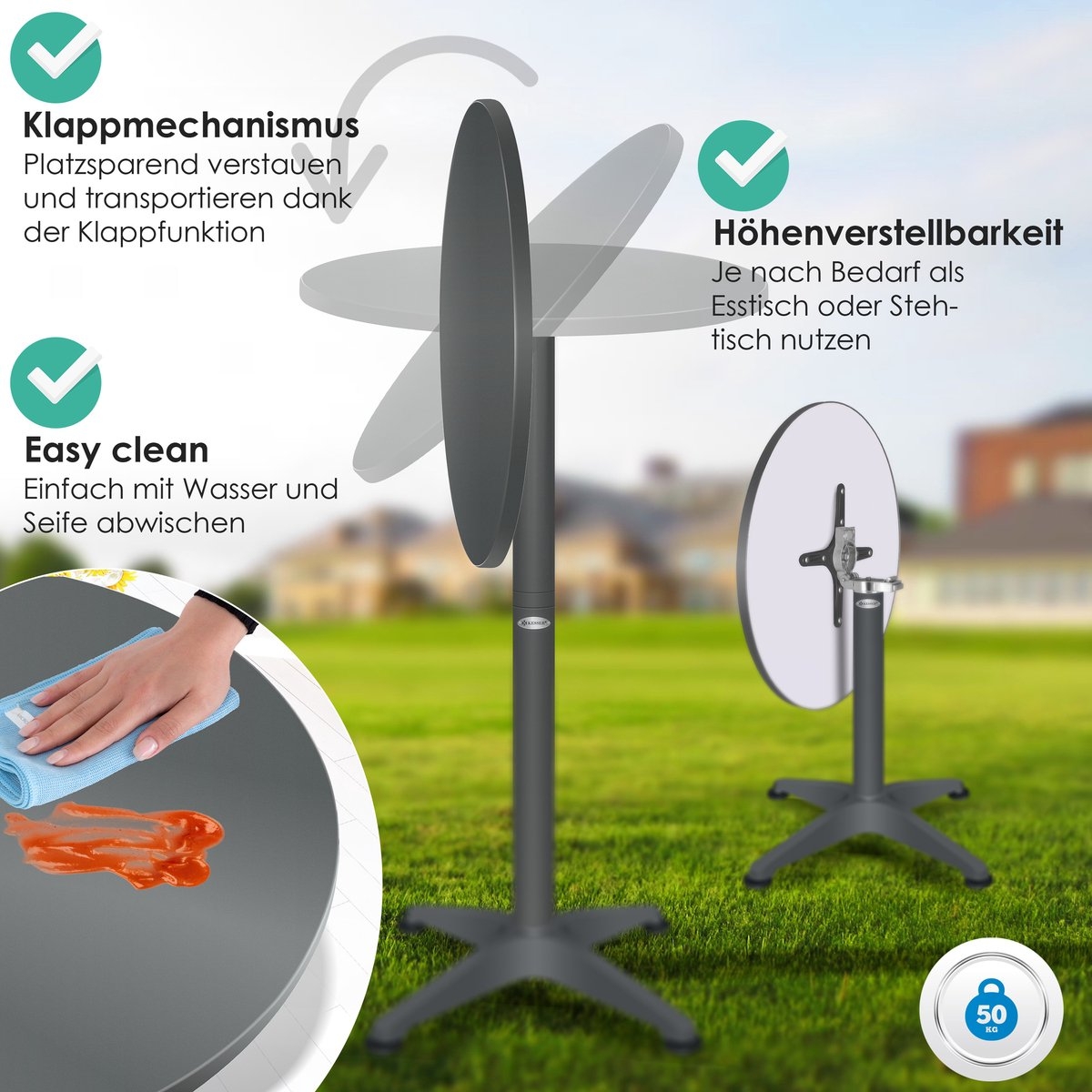 2in1 klapbare bartafel bistrotafel Ø60cm gemaakt van weerbestendig aluminium, weerbestendig, roestvrij, afwasbaar en gemakkelijk schoon te maken en dus veelzijdig.