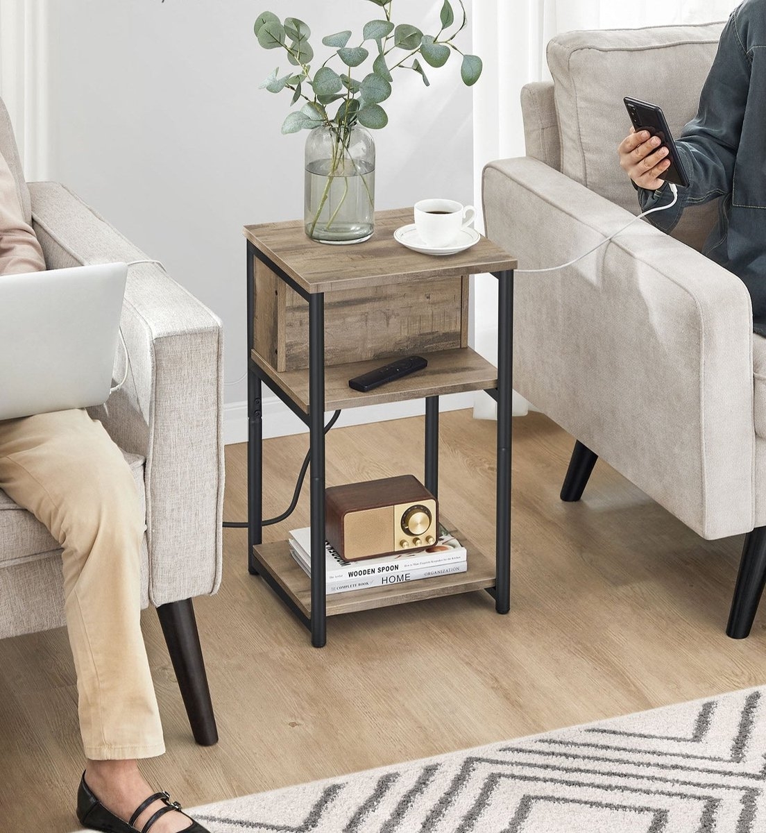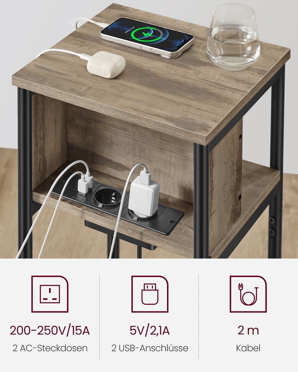 De bijzettafel met stopcontact in hazelnootbruin-zwart