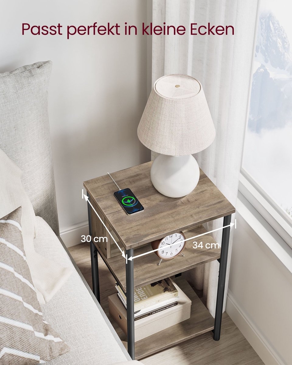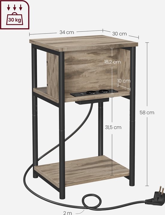 Voeg stijl en functionaliteit toe aan je ruimte met deze bijzettafel met ingebouwd stopcontact. Perfect voor het opladen van apparaten.