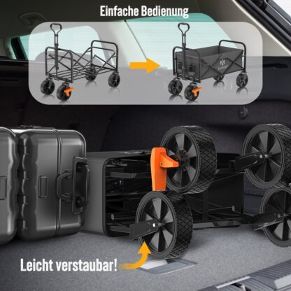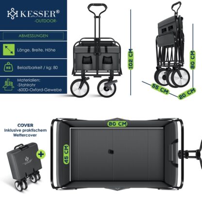 opvouwbare handkar, stevig stalen buisframe zorgt voor een maximaal draagvermogen van 80 kg, gevoerde en ergonomische handgreep, duurzaam en robuust dankzij poedercoating.