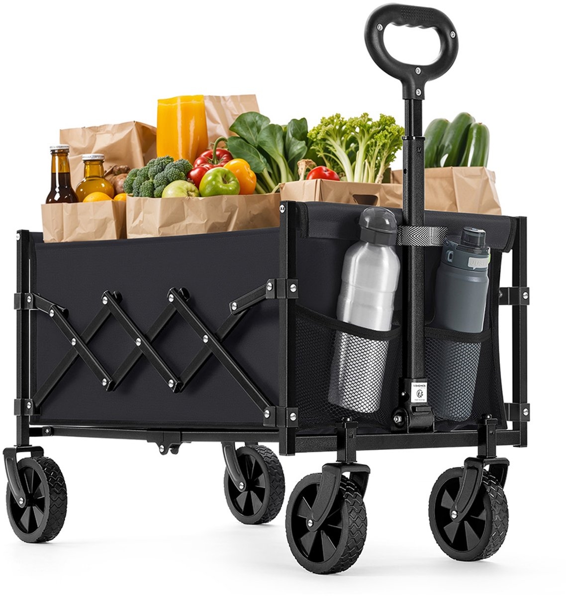 【VEELZIJDIG GEBRUIK】Of u nu professioneel in de tuin werkt, boodschappen naar huis vervoert of uw snacks en keukengerei meeneemt naar een picknick of kampeertrip, deze kampeerkar is er voor u.