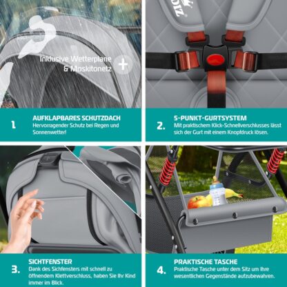 BETROUWBARE WEERBESCHERMING: Ongeacht het weer is uw kind beschermd. De meegeleverde regenhoes en zonneklep bieden betrouwbare bescherming tegen regen, wind en zon, zodat uw kind droog, warm en veilig blijft terwijl het de wereld ontdekt.