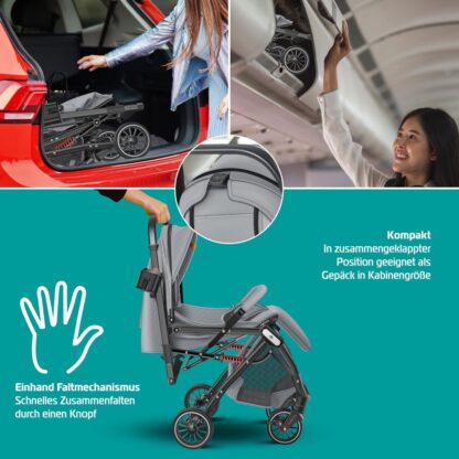 PRAKTISCH EENHANDIG VOUWMECHANISME: Met onze kinderwagen kunt u uw dagelijks leven moeiteloos organiseren. Het innovatieve eenhandige vouwmechanisme maakt het mogelijk om de kinderwagen snel en eenvoudig in te klappen met slechts één handgreep, ideaal voor ouders die vaak onderweg zijn en waarde hechten aan eenvoudige bediening.