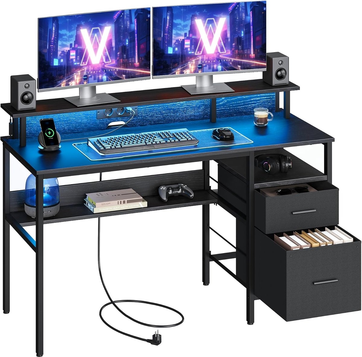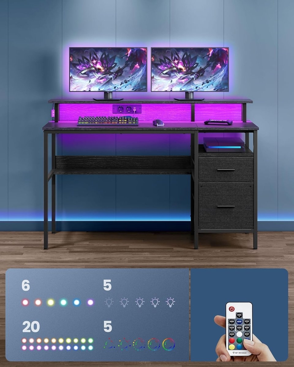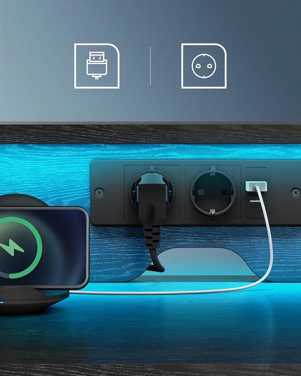 Creëer de perfecte werk- of gameplek met deze veelzijdige computertafel, uitgerust met geïntegreerde LED-verlichting en praktische opbergruimte. Met een modern betonlook design en slimme functies biedt dit bureau comfort, stijl en functionaliteit in één.