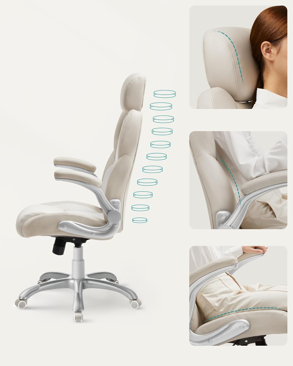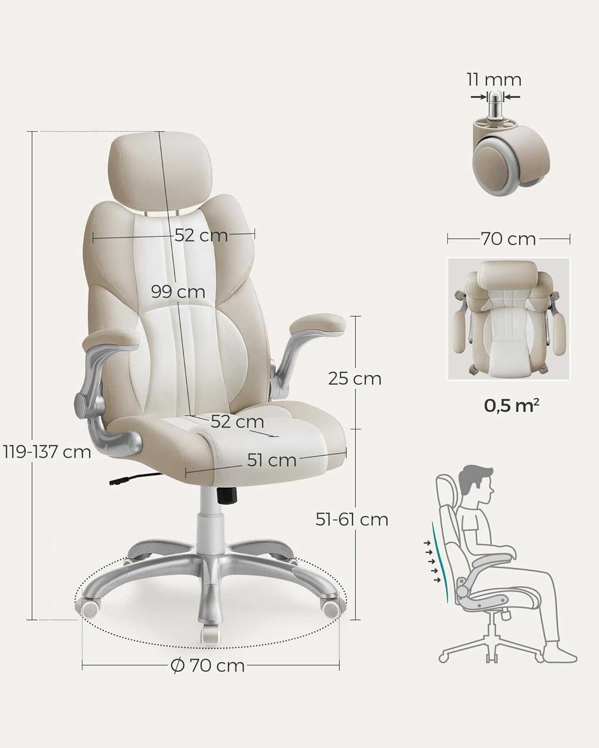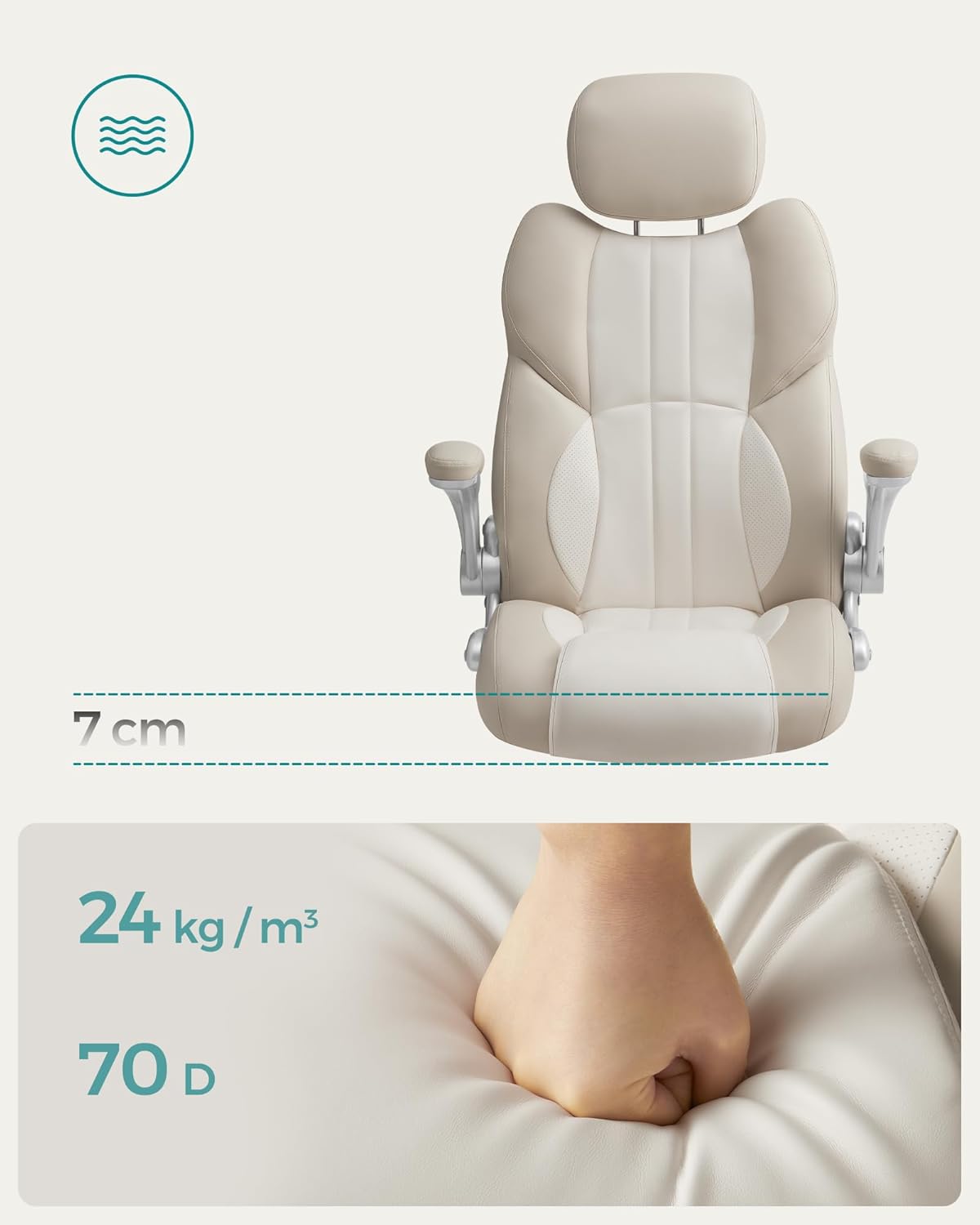 - Betrouwbaar en van hoge kwaliteit: dankzij de stevige zitting, hoogwaardige gasveer, robuuste wielen en duurzame, gemakkelijk te reinigen PU-bekleding is deze bureaustoel van 150 kg jarenlang een betrouwbare hulp op het werk