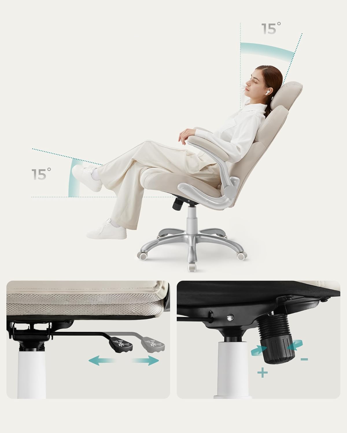 [Comfortabel zitten] Dankzij de hoogteverstelling en de verstelbare hoofdsteun biedt deze bureaustoel een comfortabele zitpositie voor gebruikers van alle maten. De wipfunctie is perfect voor een dutje na een stressvolle werkdag