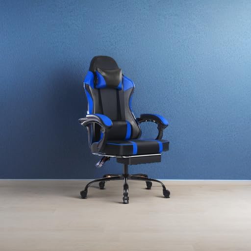 Moderne esthetiek: Til uw gaming-setup naar een hoger niveau met onze stijlvolle, moderne gamingstoel, verkrijgbaar in een strakke blauwe kleur met een geborstelde afwerking en taps toelopende poten.