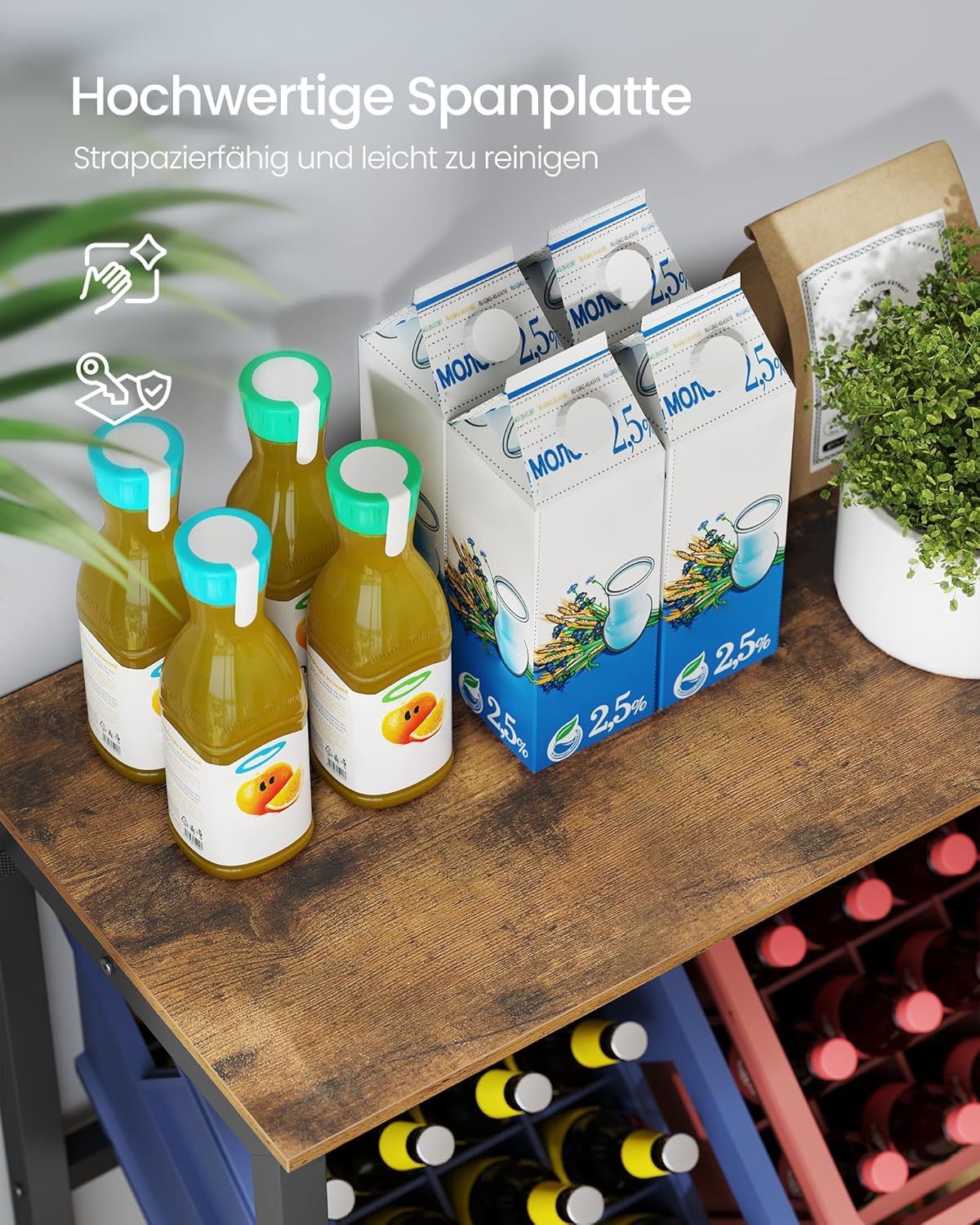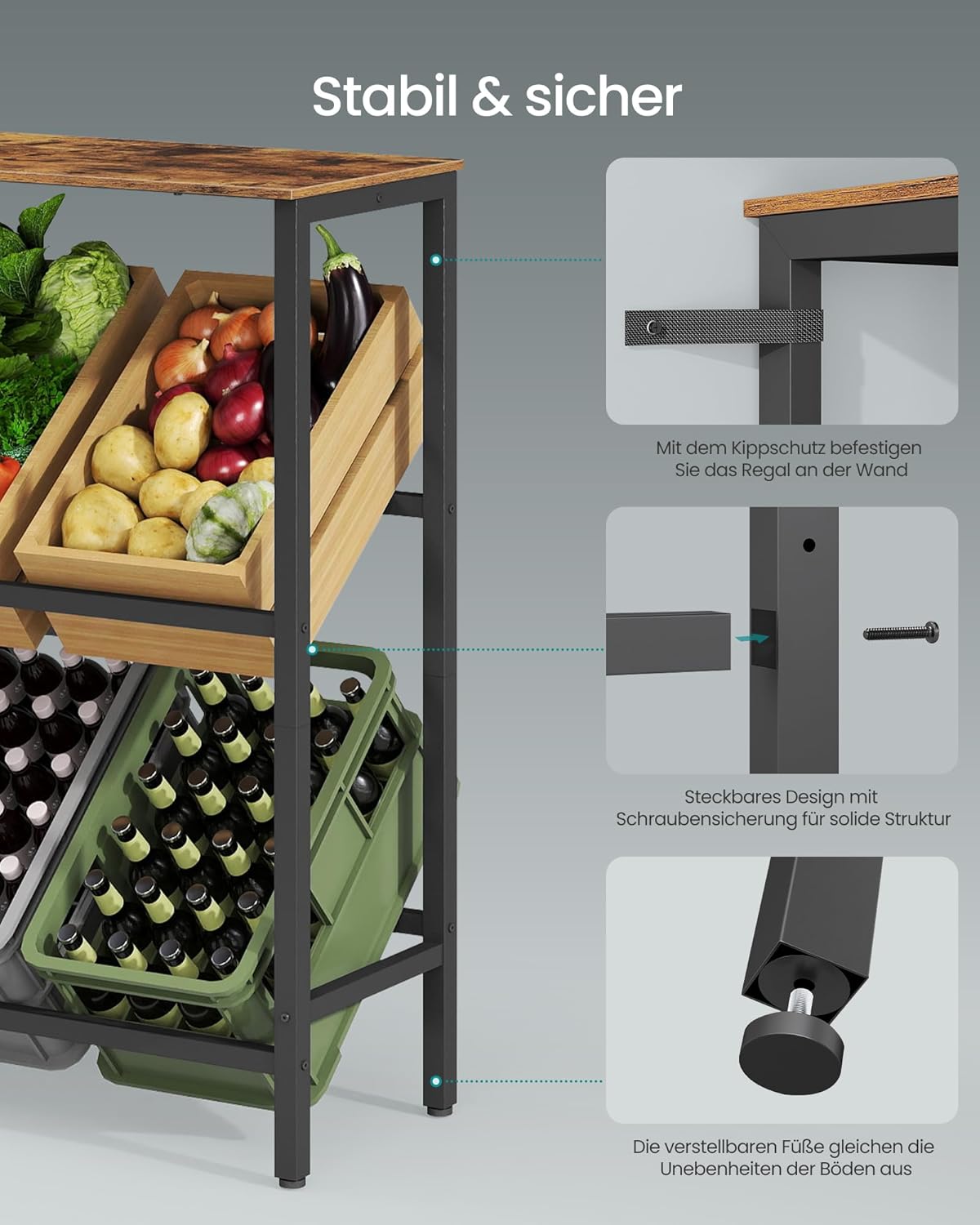 Multifunctioneel: het rek is niet alleen geschikt voor drankkratten, maar kan ook gecombineerd worden met houten kisten, metalen manden en plastic dozen voor het bewaren van fruit, groenten, snacks, enz.