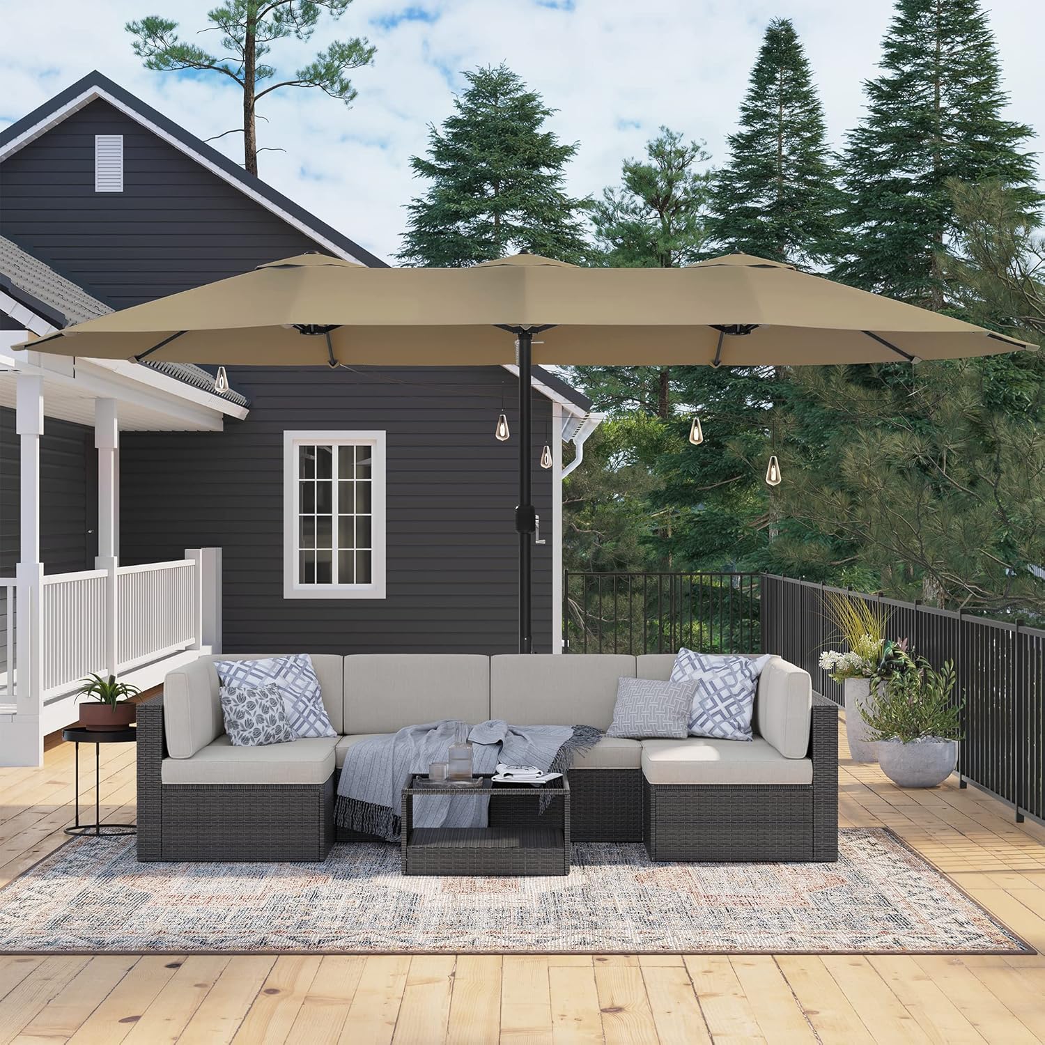 [Geen gereedschap nodig] Verbind eenvoudig twee stokken met elkaar en bevestig de parasolstok met een parasolstandaard (niet meegeleverd). Draai vervolgens met de klok mee aan de slinger om de parasol te openen – klaar! [Multifunctioneel] De parasol van 460 x 270 cm werpt een geweldige schaduw wanneer u een feestje in de tuin wilt organiseren. Hij is ook geschikt voor openbare evenementen en de buitenruimte van uw café of restaurant.