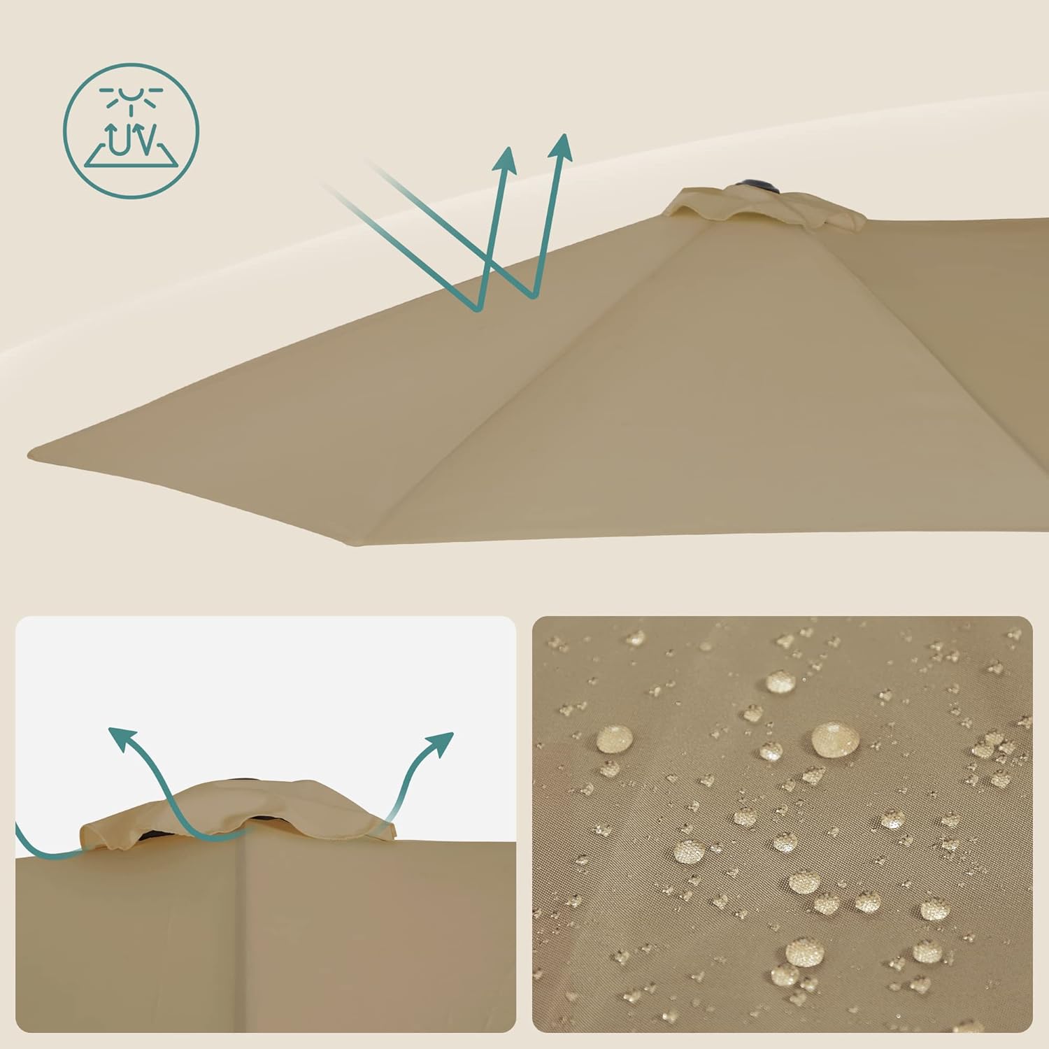 Het parasoldoek van deze dubbele parasol biedt uitstekende uv-bescherming tot UPF 50+: het blokkeert gemakkelijk 98% van de uv-straling en beschermt je huid tegen verbranding, zelfs op de heetste uren van de dag!