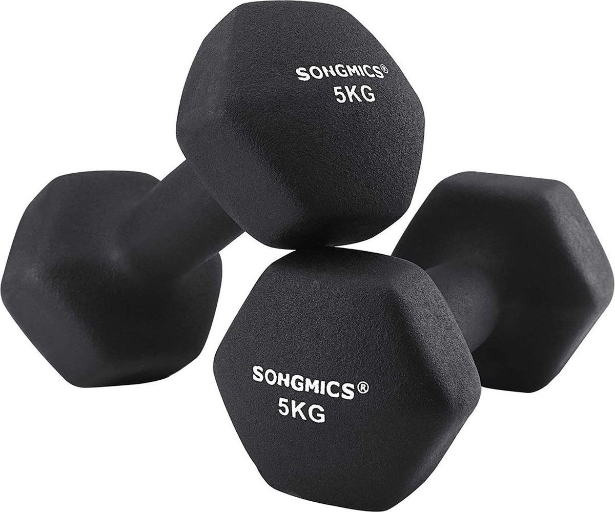 Dumbbells set – 2 x 5 kg – totaal 10 kg – zwart – metaal met neopreen buitzijde – syl60bk