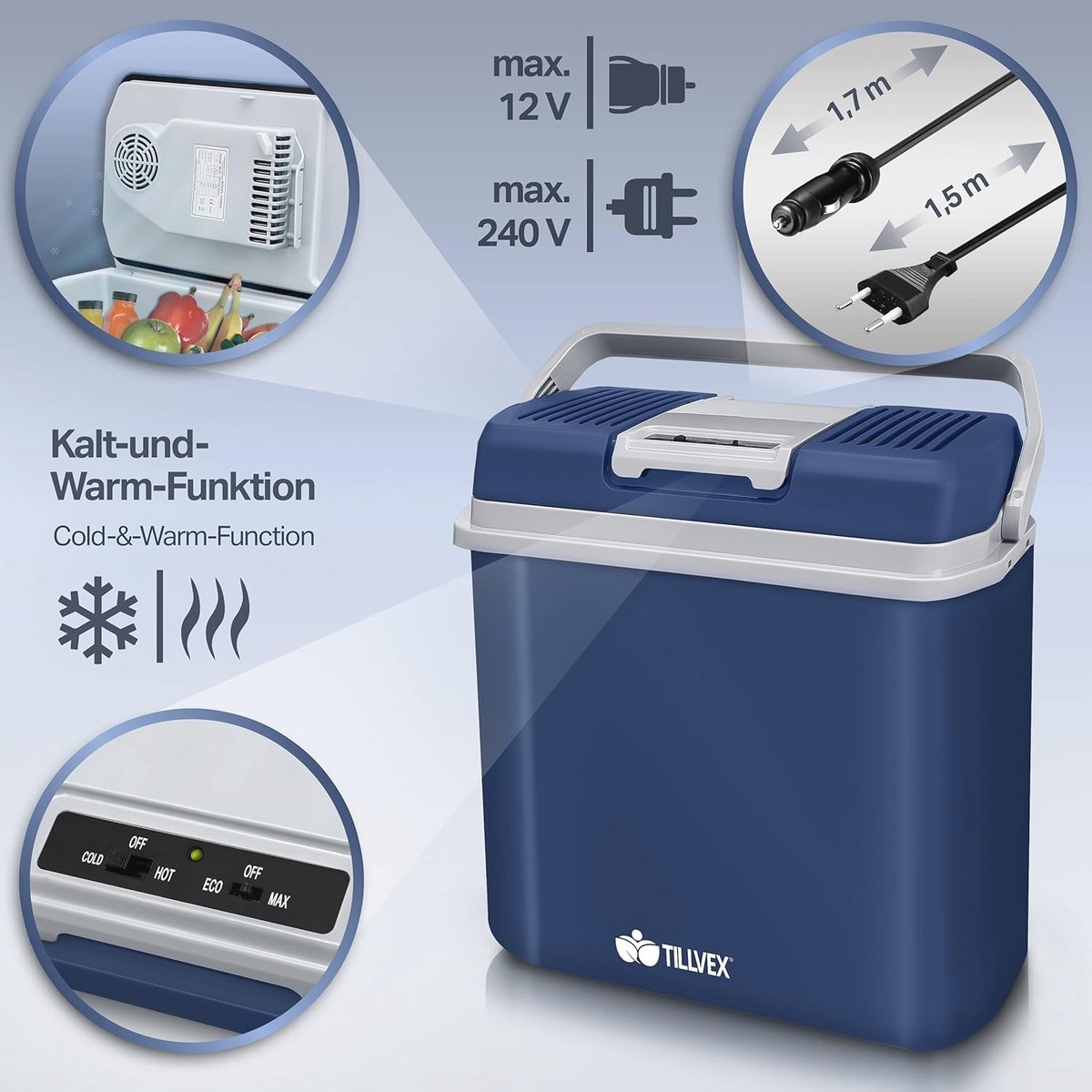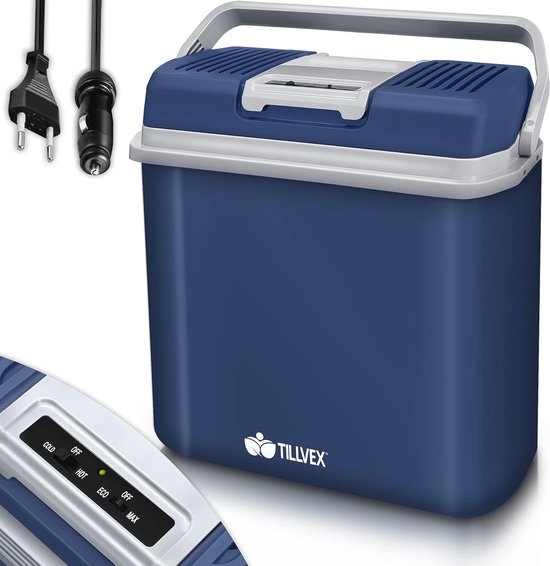 tillvex elektrische koelbox 24L | Minikoelkast 230V en 12V voor auto’s en campings | Koelt & verwarmt | ECO-modus