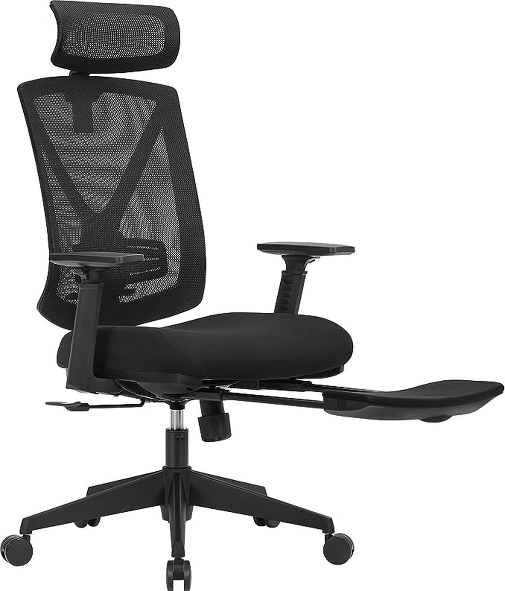 Ergonomische Bureaustoel Met Voetenbankje – Bureaustoel Met Lendensteun – Verstelbare Hoofdsteun En Armleuningen – Hoogteverstelling En Kantelfunctie – Draagvermogen Tot 150 Kg – Zwart