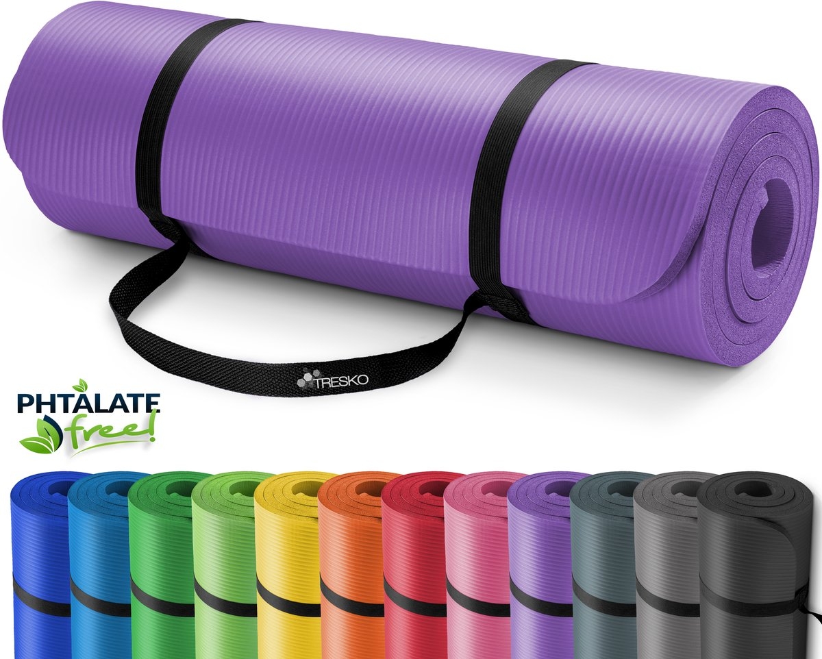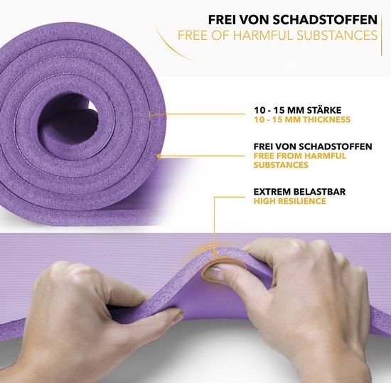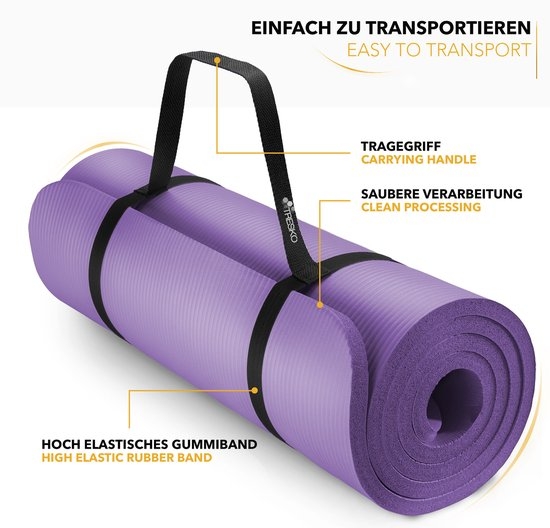 Fitnessmat yogamat pilatesmat gymnastiekmat – 185 x 60 cm – 1.5 cm dikte – NBR-schuimrubber – paars