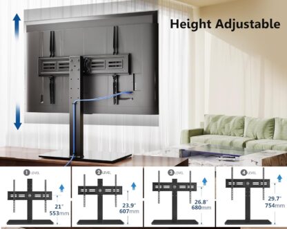 Op zoek naar een veelzijdige tv-standaard? Deze tv-standaard met houder is ontworpen voor 50, 55, 60, 65, 70, 75, 80 en 85 inch tv’s en is compatibel met Samsung, Sony, LG, Sharp, Insignia, Vizio, Haier, Toshiba, Sharp, Element, TCL, etc.