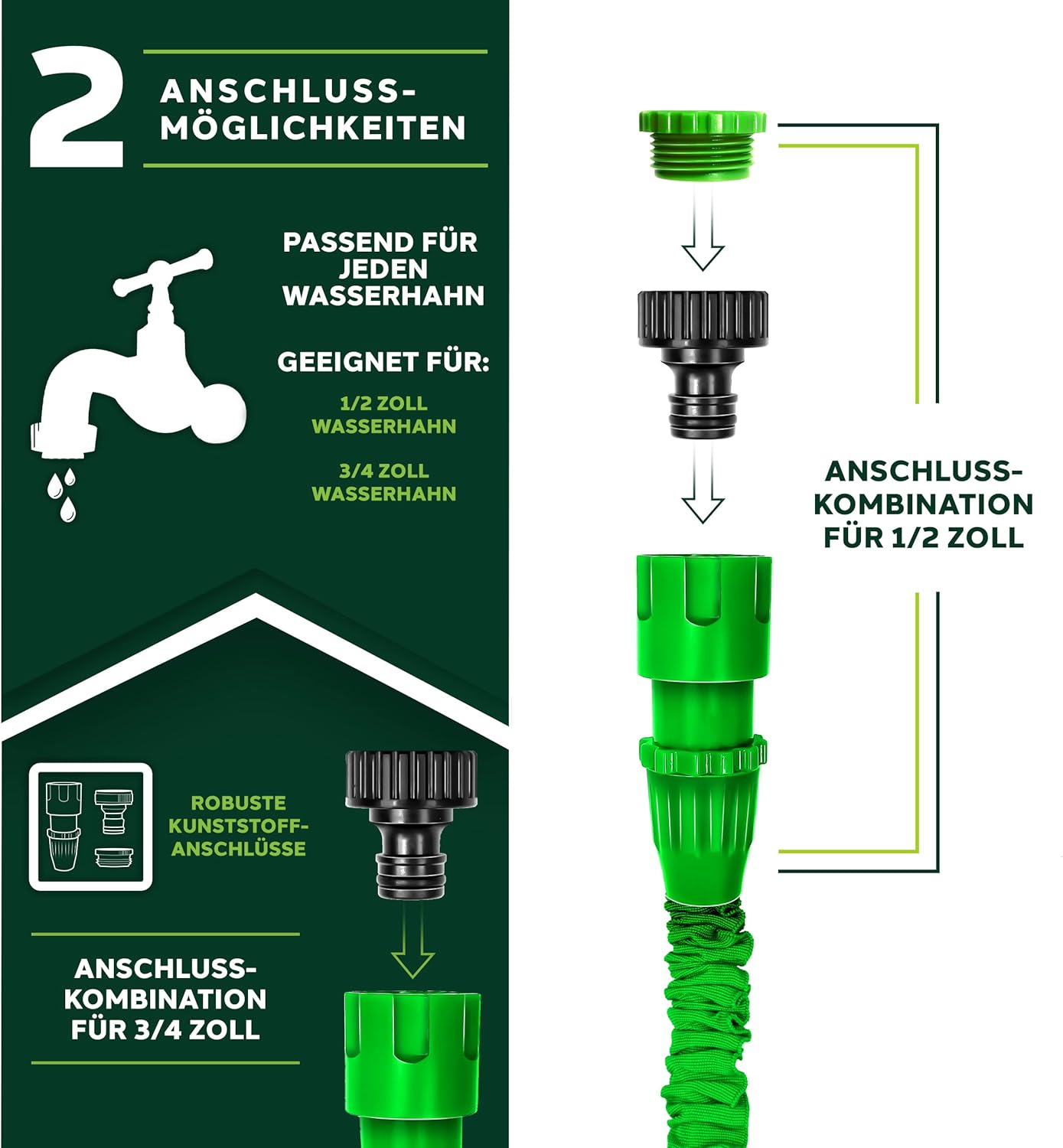 – Inclusief adapter van 1/2 inch naar 3/4 inch, geschikt voor elke kraan met schroefdraad