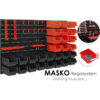 De praktische wandplank met bijpassende stapeldozen en gereedschaphouders brengt meer orde en overzicht op uw werkplek! Met deze plank heeft u de mogelijkheid om kleine onderdelen zoals gereedschap, spijkers, schroeven, moeren, ringen, enz. te sorteren. Zo heeft u alles bij de hand. De dozen kunnen individueel verwijderd en gestapeld worden. De plank is uitbreidbaar en kan makkelijk aan de muur bevestigd worden.