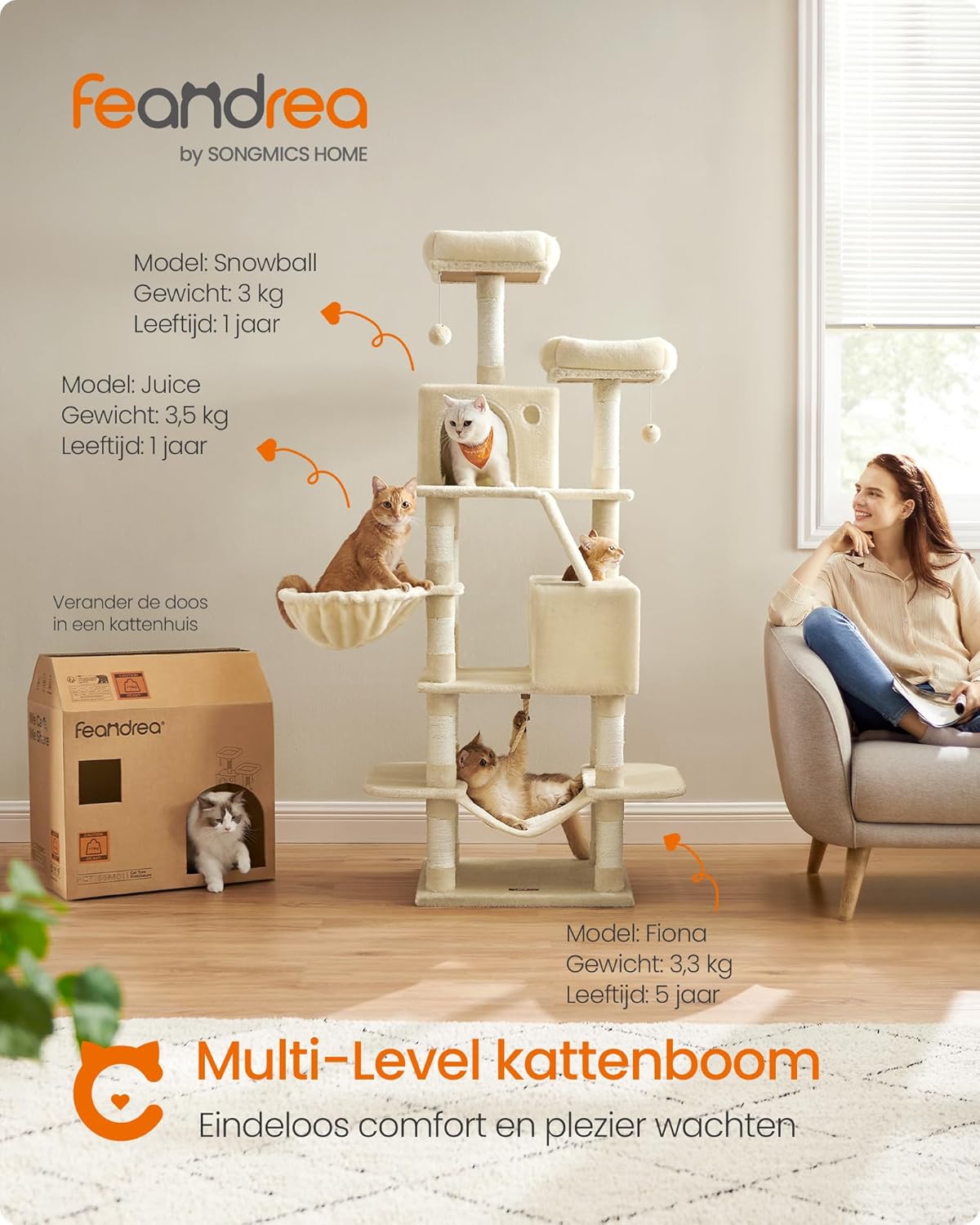 Eenvoudig te monteren: Dankzij de eenvoudige structuur, duidelijke instructies en gelabelde onderdelen is het monteren van deze kattentoren kinderspel.