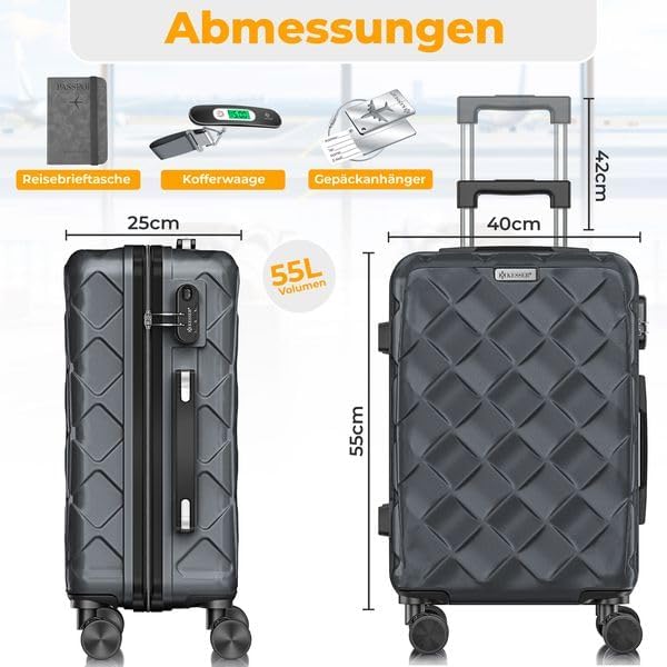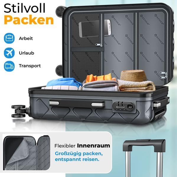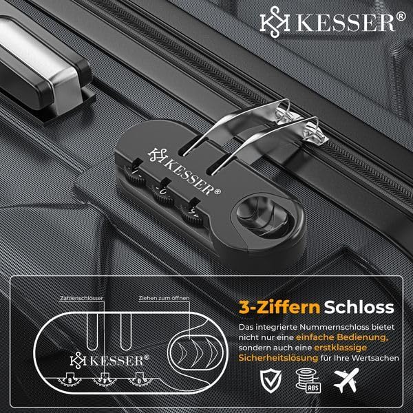 ROBUUST EN HOGE KWALITEIT: De hoge kwaliteit van de koffer van het merk KESSER is ongeëvenaard. De koffer is gemaakt van robuust ABS-materiaal, is bestand tegen krassen en schokken en is zelfs bestand tegen veeleisende reizen. Of je nu met het vliegtuig, het openbaar vervoer of de auto reist, deze harde koffer is perfect voor alle situaties.