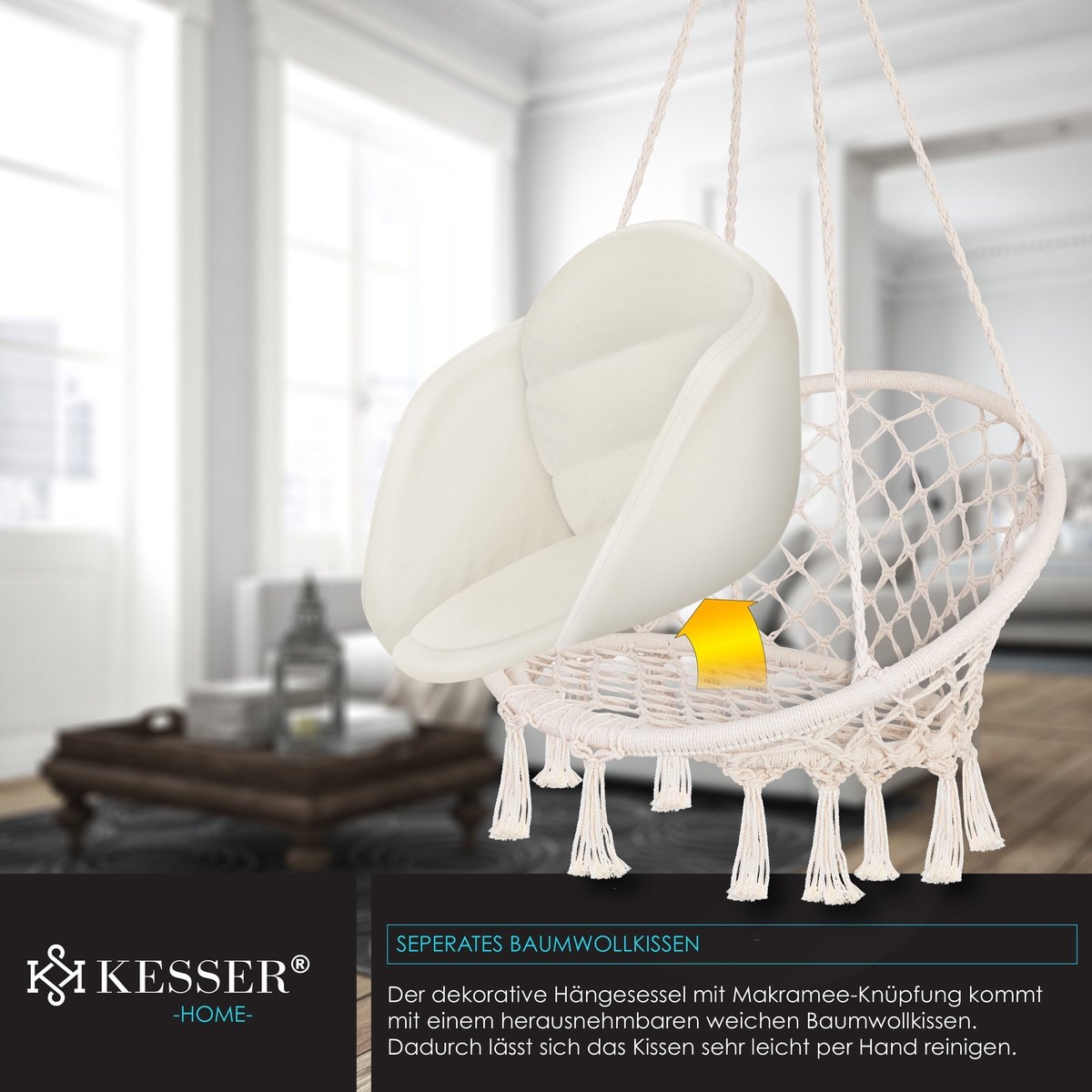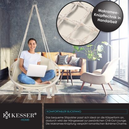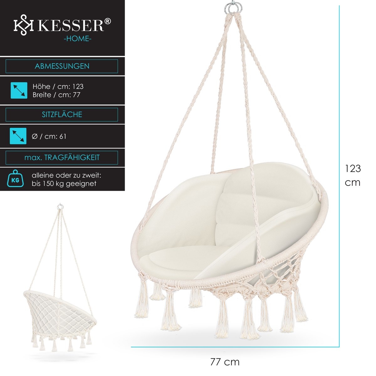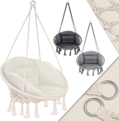 HOOGWAARDIGE VERWERKING: De hangstoel wordt verbonden door 4 stevige touwen en met 2 stabiele stalen ringen. De maximale draagkracht is maximaal 150 kg. Bovendien is de stoel gemaakt van zeer stevig en stabiel staal dat is beschermd tegen weersinvloeden door een hoogwaardige poedercoating, waardoor een duurzaam gebruik wordt gegarandeerd.