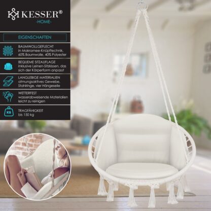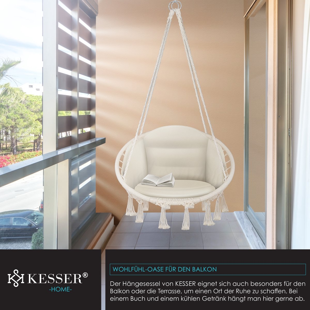 VARIABEL TE GEBRUIKEN: Past perfect in je tuin of serre of op je terras en balkon, en natuurlijk ook bij je al bestaande tuinmeubilair en buitenversieringen. Of het nu binnen of buiten is – met de hoogwaardige schommelmand van KESSER ben je flexibel en goed uitgerust voor alle situaties.