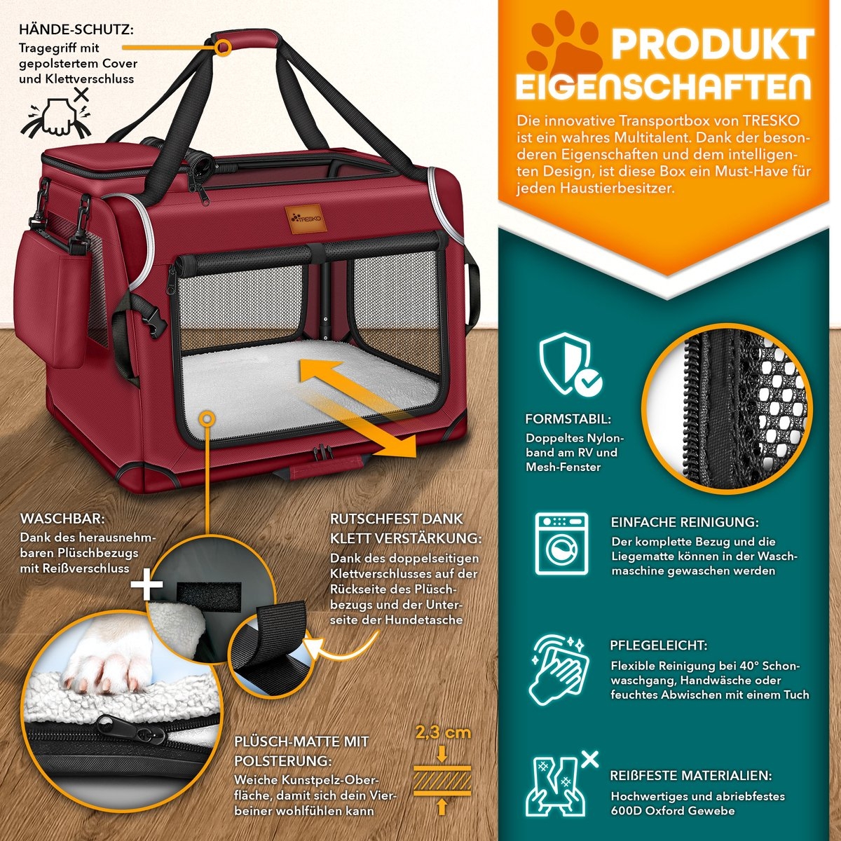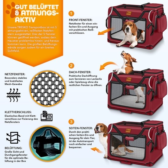 TRESKO® Opvouwbare Hondenbench incl. Likmat en Spatel | Transportbox voor Honden en Katten | Hondenmand voor Kleine & Grote Honden | Ademende Hondentas | Robuuste Hondenmand