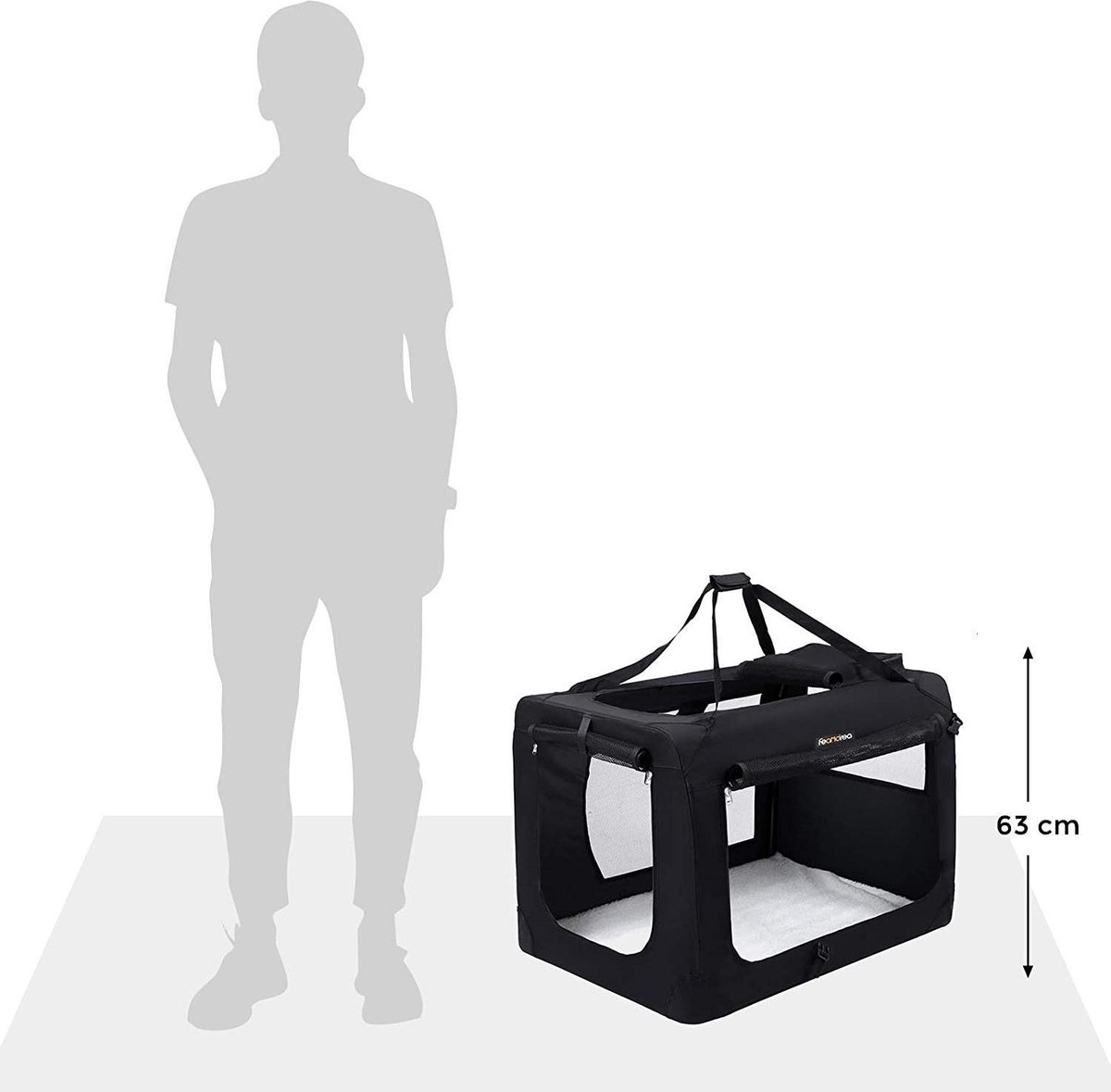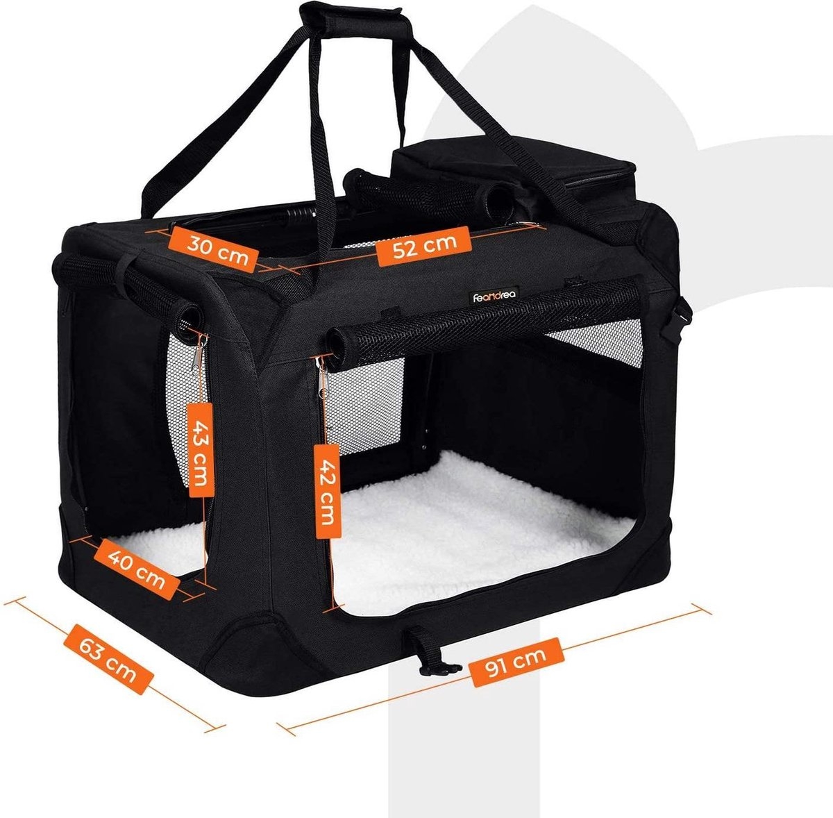 Veilig, comfortabel, praktisch: De draagbare hondenbench is gemaakt van een stalen frame en robuuste Oxford-stof en heeft een onderhoudsvriendelijke fleecemat aan de binnenkant – stabiel en comfortabel. Snacks, halsbanden etc. passen in de 2 zijvakken