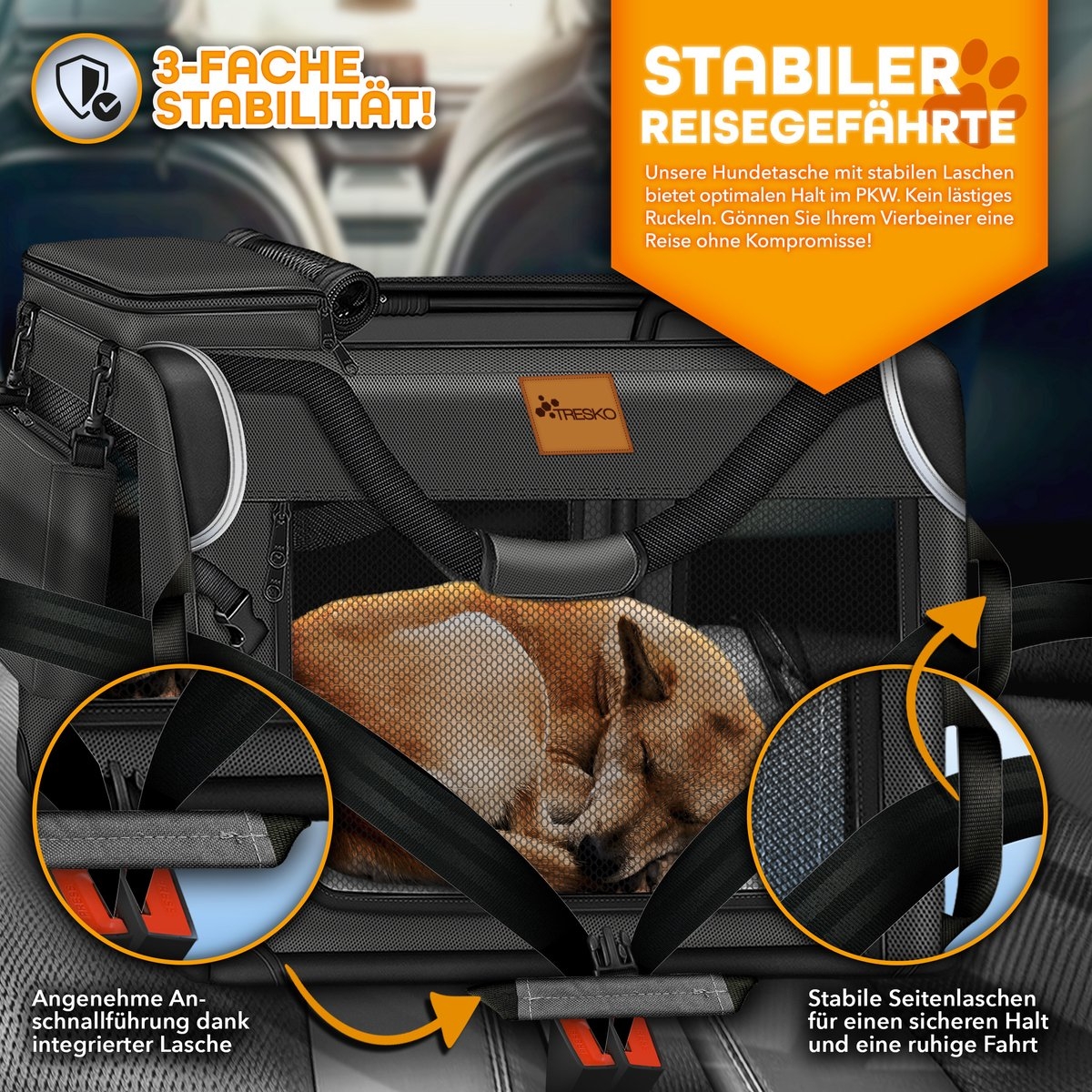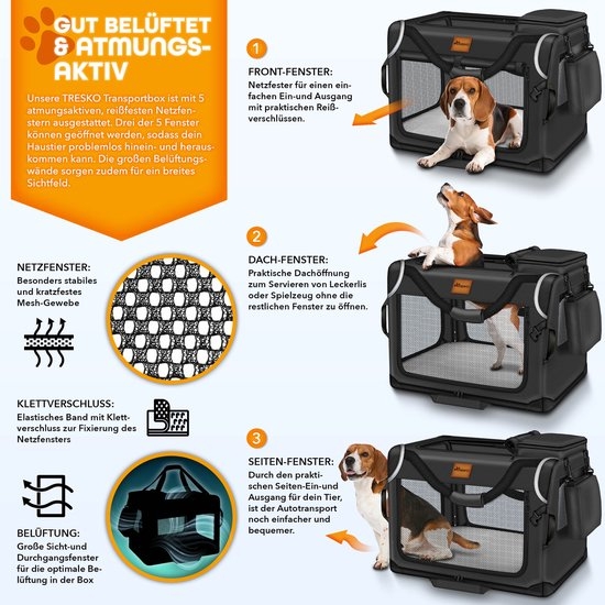 TRESKO® Opvouwbare Hondenbench incl. Likmat en Spatel | Transportbox voor Honden en Katten | Hondenmand voor Kleine & Grote Honden | Ademende Hondentas | Robuuste Hondenmand
