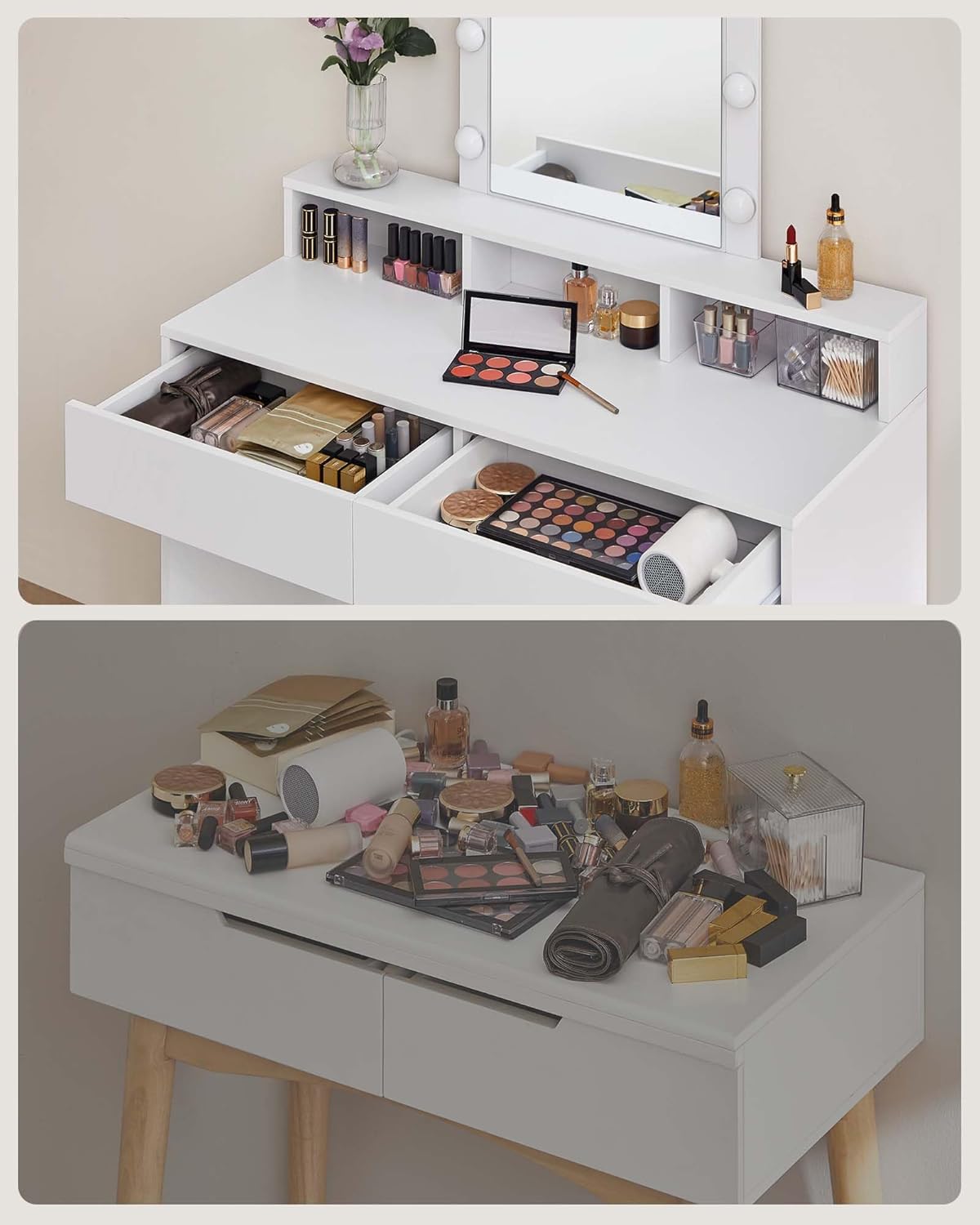 Instelbare helderheid: Deze kaptafel met spiegel is uitgerust met 9 lampen met instelbare helderheid. Druk op de schakelaar om de helderheid in te stellen en uw make-up perfect te maken.