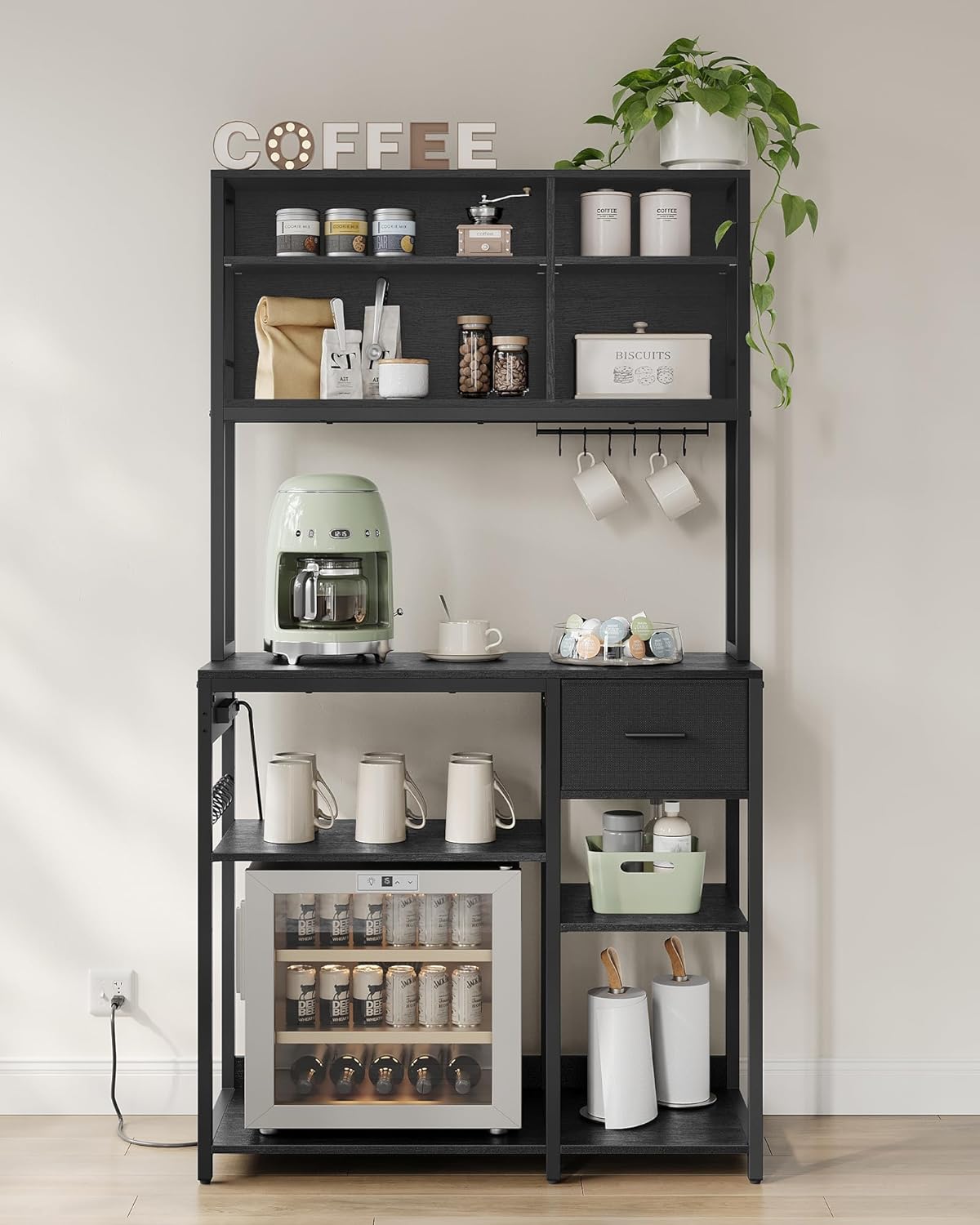 Keukenmeubel – magnetronkast – koffiehoek – met stekkerdoos – hoogte 180 cm – met lade en vakken – zwart – KKS027B02