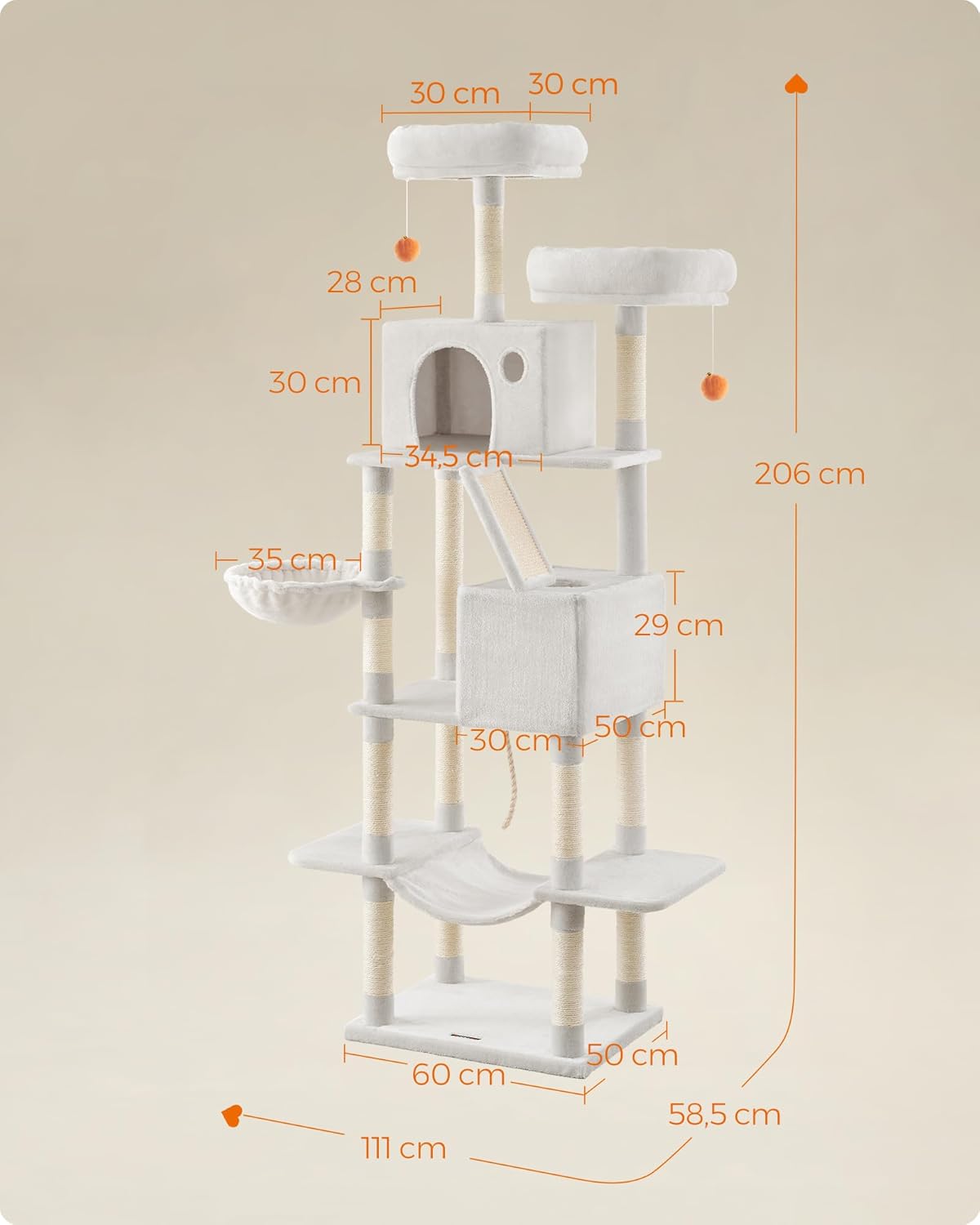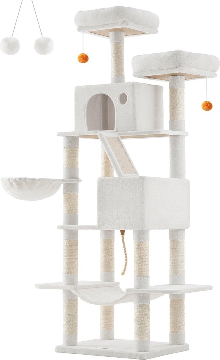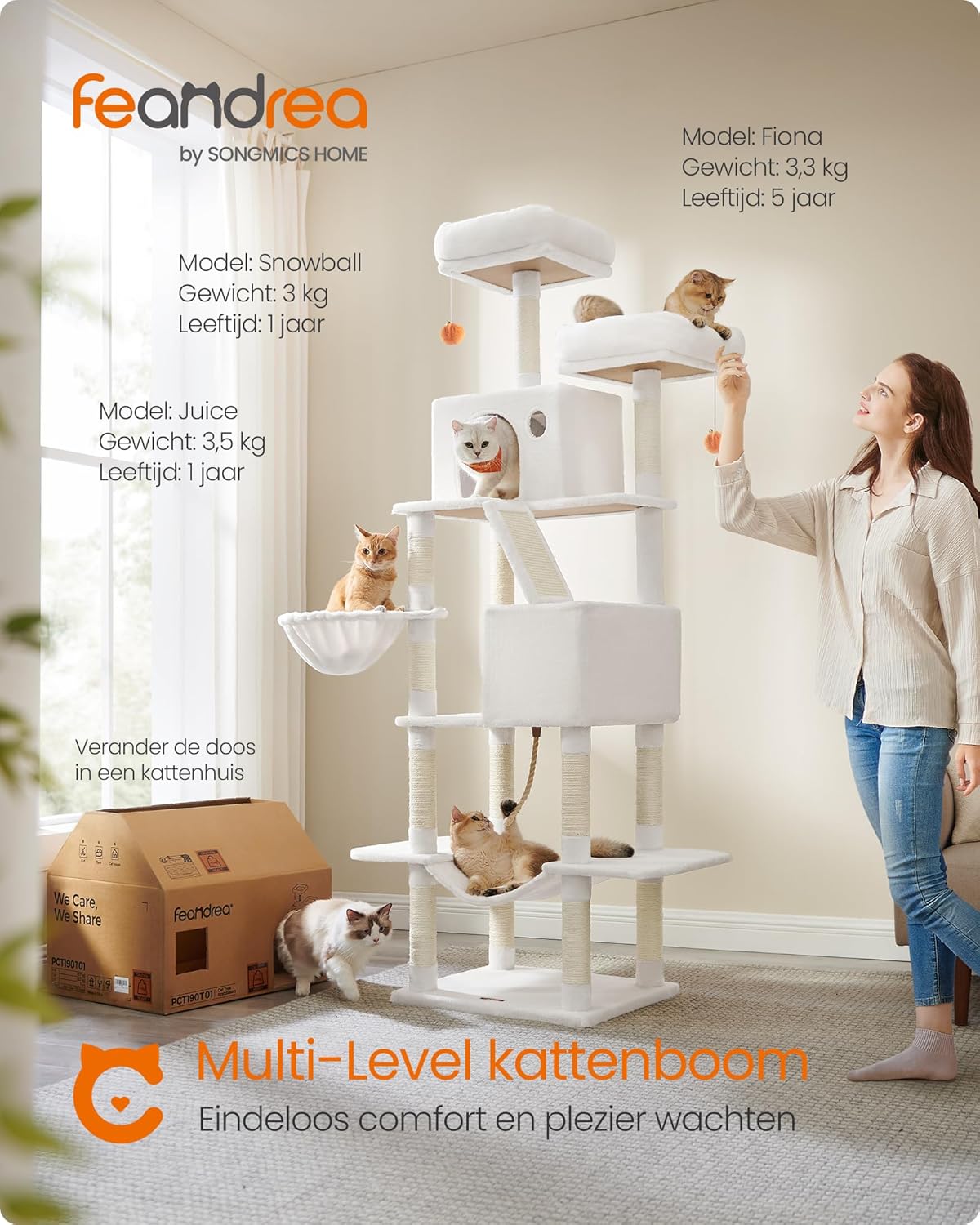 Een stabiele krabpaal, vervaardigd uit zachte en gemakkelijk te reinigen materialen. Dankzij het doordachte ontwerp past hij in elk interieur en biedt hij je kat extra speelruimte. De paal is omwikkeld met sisaltouw, wat helpt om de nagels van de kat scherp te houden en tegelijkertijd je meubels beschermt tegen krassen.