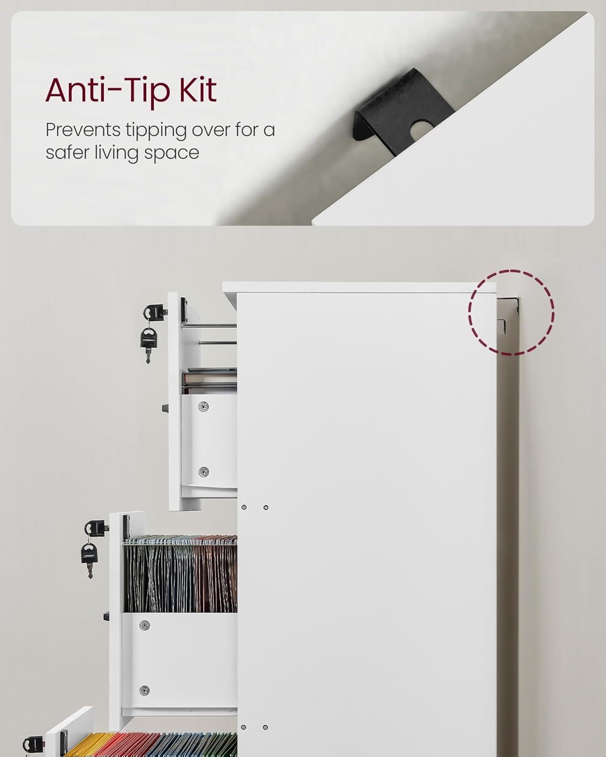 Robuust. Stabiel. Veilig: Gemaakt van hoogwaardig spaanplaat en MDF, is de bureaukast robuust en duurzaam, waardoor elke lade tot 15 kg kan dragen. 2 meegeleverde kantelbeveiligingsonderdelen verhogen de stabiliteit en veiligheid tijdens gebruik.