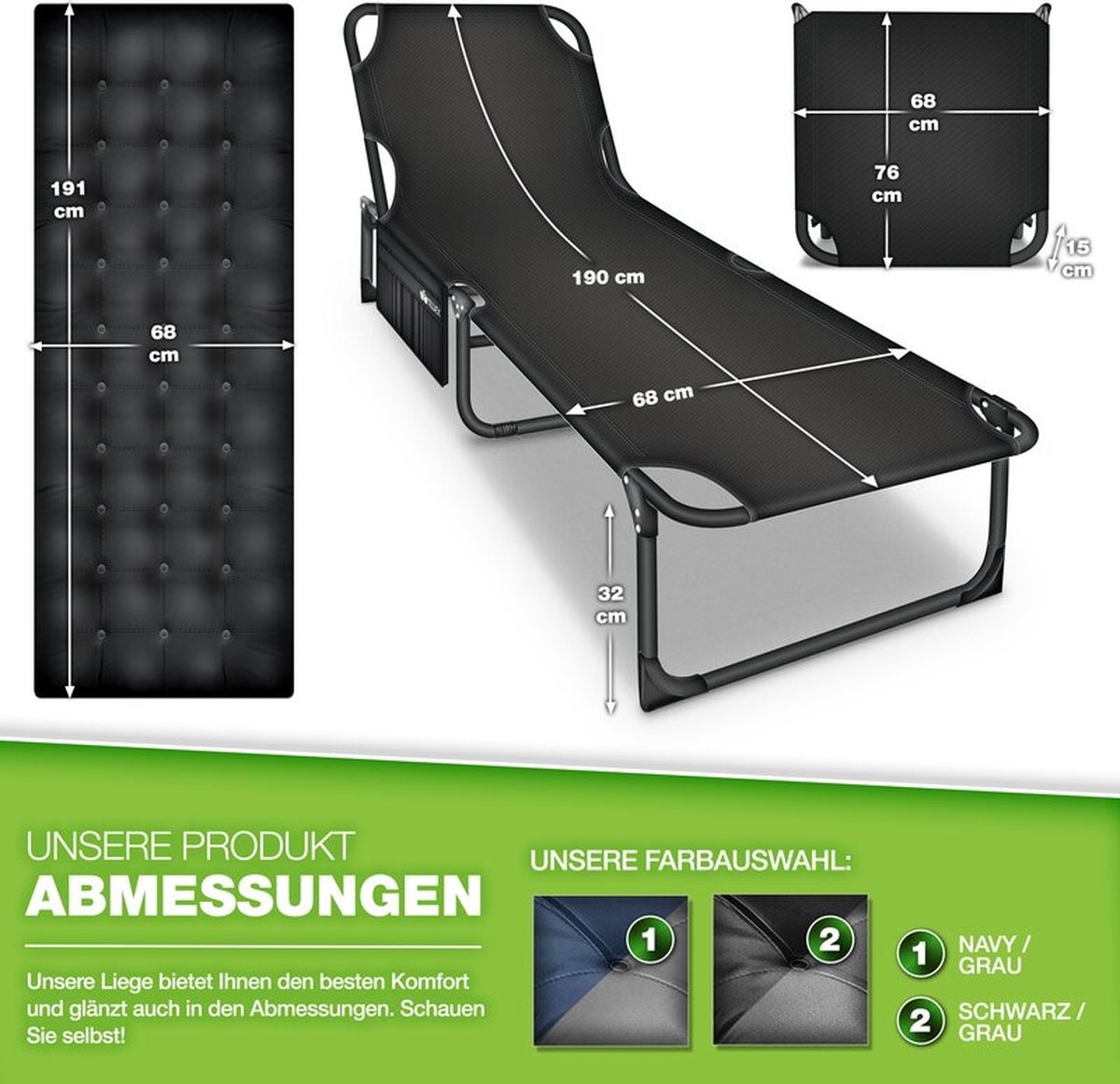 Soft Head Cushion: onze Camping Lounger van Tillvex is uitgerust met een super zacht kussen dat in de bank is geïntegreerd. Dit praktische ontwerp bespaart u de moeite om het kussen te ontmantelen en zorgt voor ononderbroken ontspanning. Het geïntegreerde hoofdkussen verhoogt het comfort en stelt u in staat om beter van uw rusttijd te genieten. Deze goed doordachte functie maakt het kampeerbed perfect voor de tuin, balkon, terras, reis, kamperen, strand of als gastbed.