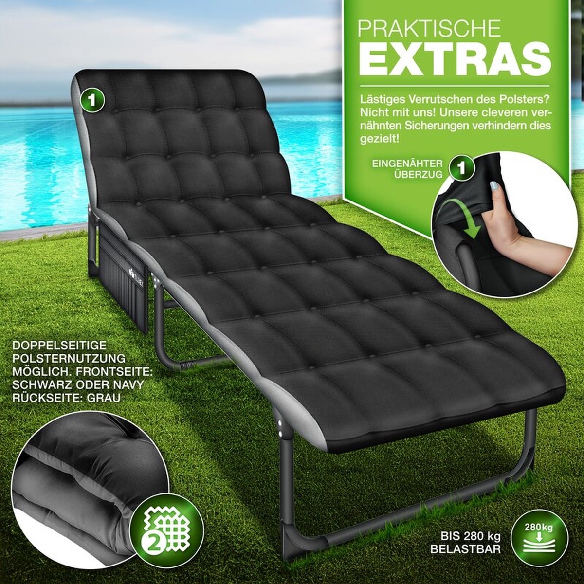 Kampeerbed opvouwbaar met zijzak en nekkussen tot 280 kg | Camping Lounger Sun Lounger met bekleding | Veldbed buiten- en indoor | Vouwbedden Guestbed opvouwbare tuincamping Festivalreis